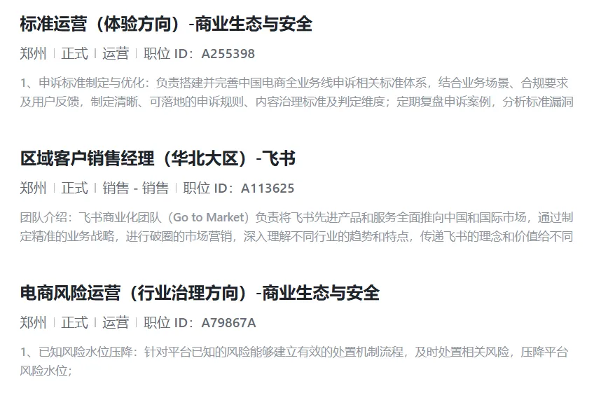 ▌来源:智联,字节跳动招聘,阿里巴巴集团,郑州本地宝综合,如有侵权请联系删除