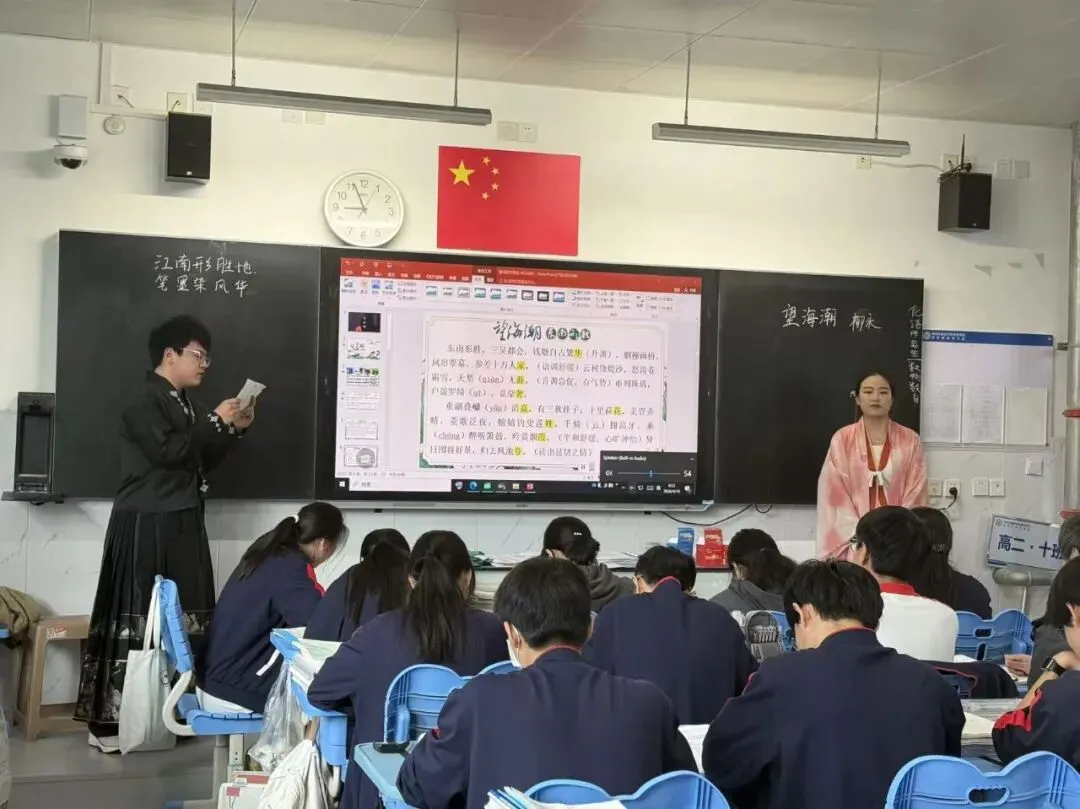 在党员与组长的带动下,各学科“开悟课堂”亮点纷呈。语文课堂身着汉服品读宋词,以情境浸润提升人文素养;英语课堂围绕多元文化展开交流,培养学生跨文化思维;音乐课堂融入戏曲表演,传承中华优秀传统文化;化学课堂依托实验探究,锤炼科学思维。各具特色的课堂形式,让学习变得生动有趣,让思维之花在校园处处绽放。
