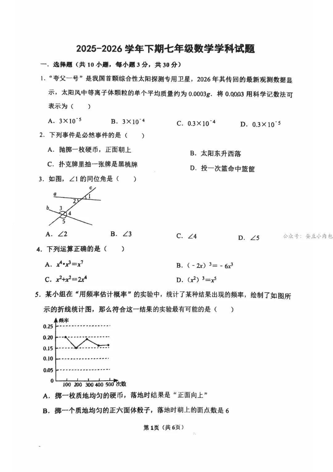 2026年河南省实验中学七年级下期第一次月考数学试卷及解析【文末附语、数、外】