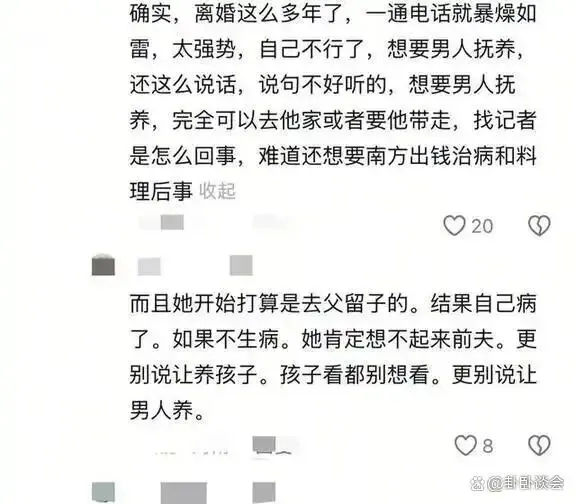 自己明明有能力解决问题,为何还要借助记者的力量?难道是想借助记者的介入对男方施加压力,让他出资为她治疗疾病,甚至安排身后事?