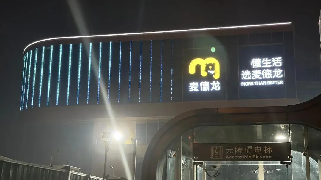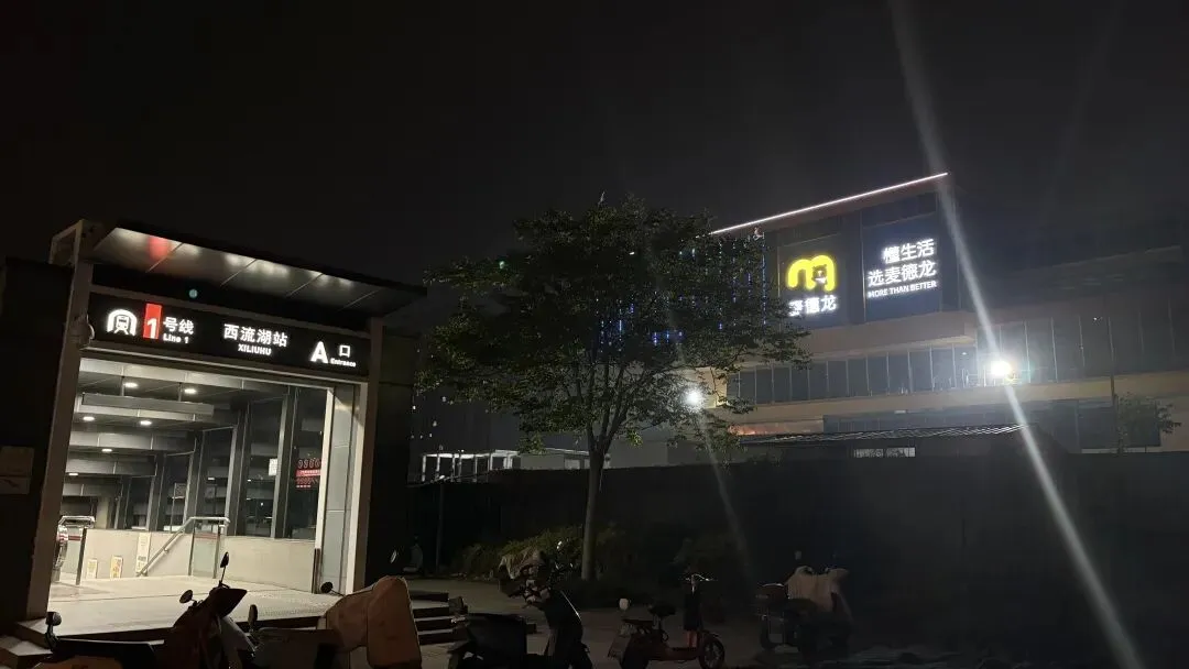 昨天晚上路过建设路和凯旋路交叉口,就是在西流湖地铁A口旁边,看到麦德龙的牌子已经亮了起来。