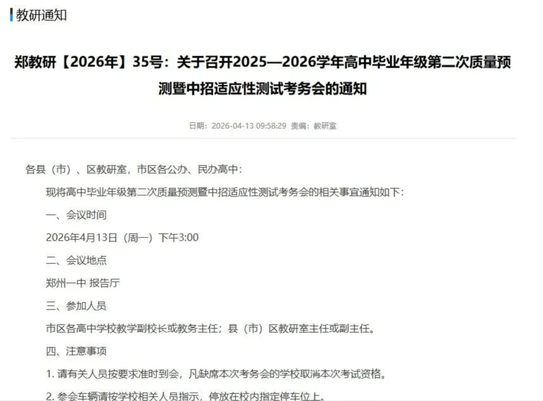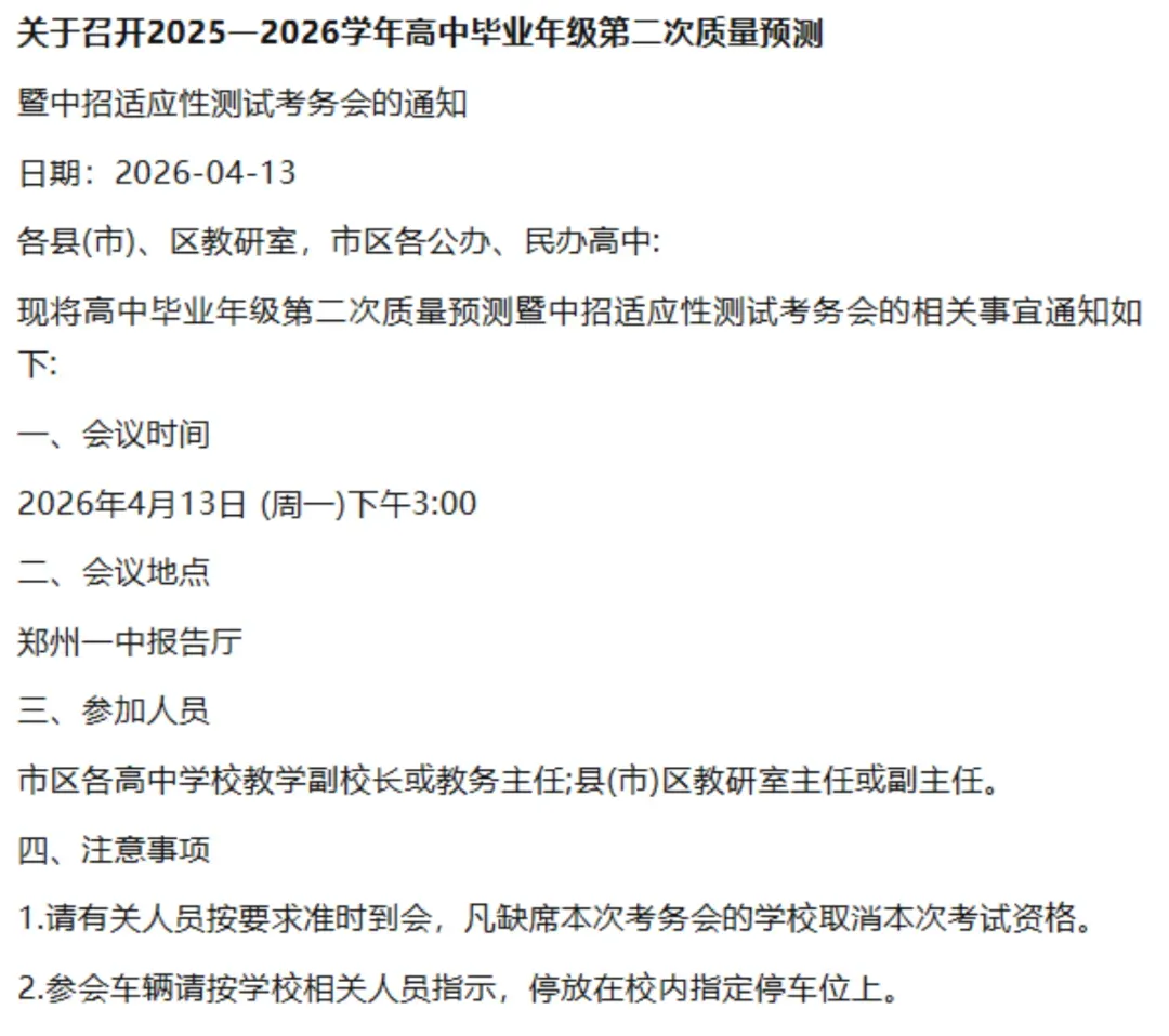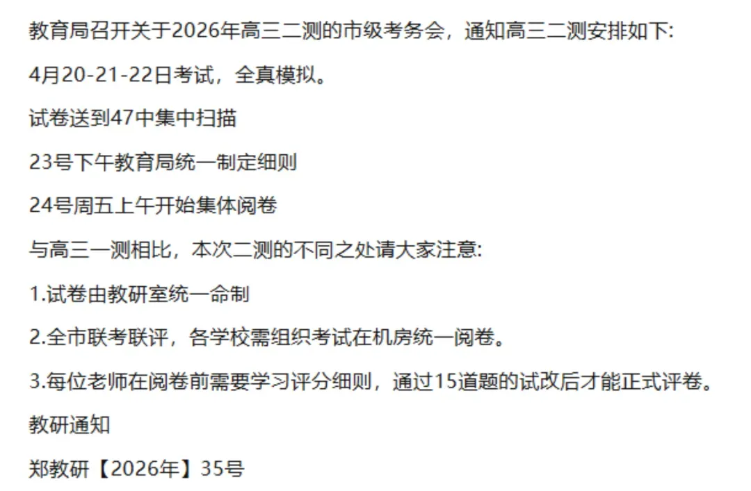 曝光!郑州高三二模考试时间安排→