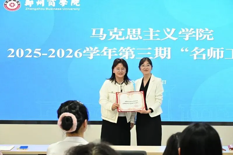 颁发聘书环节,院长马江雁代表学院为王琼老师颁发思政课建设校外专家聘书,共同合影留念。