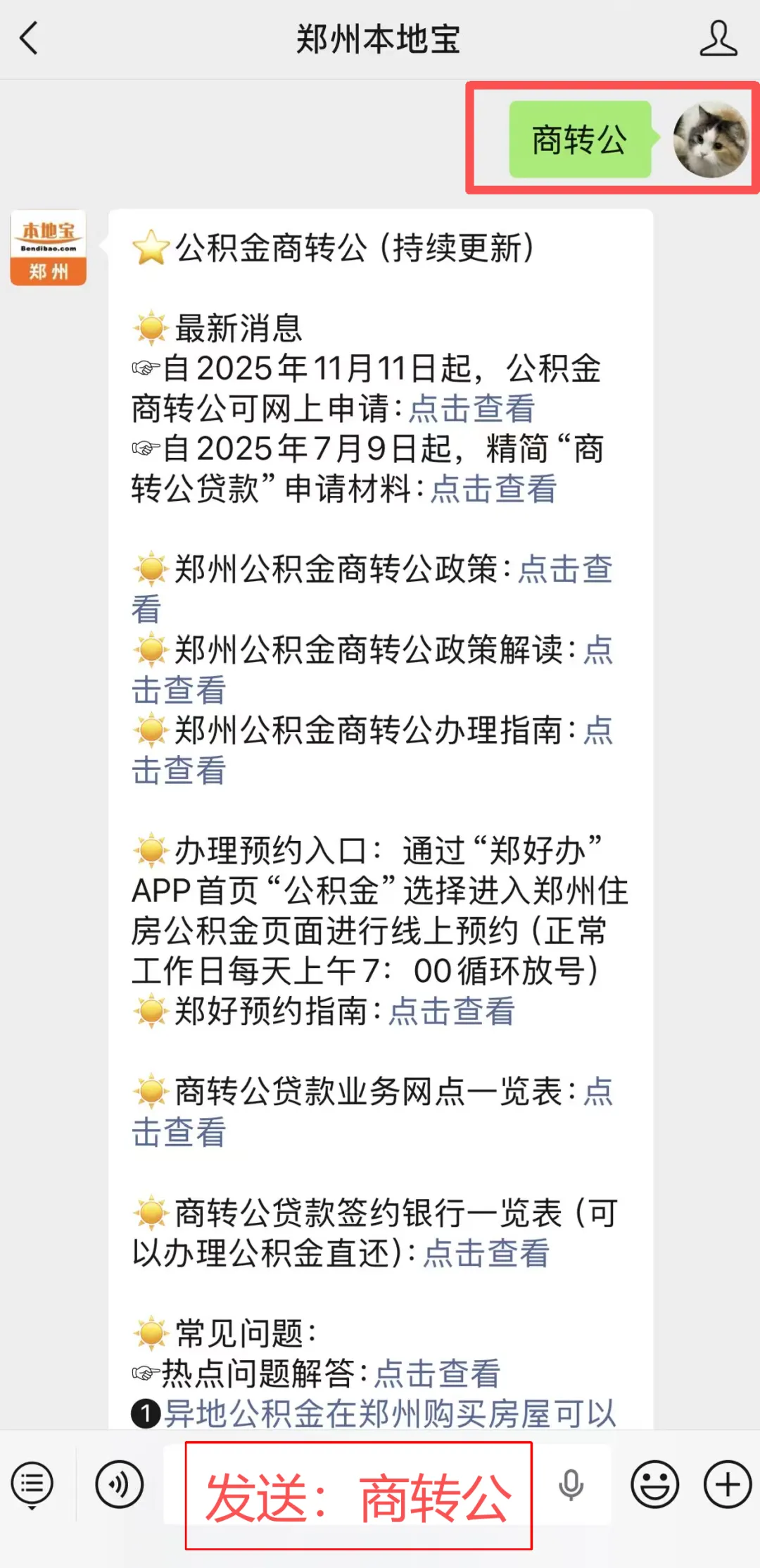 在聊天对话框发送【商转公】获取