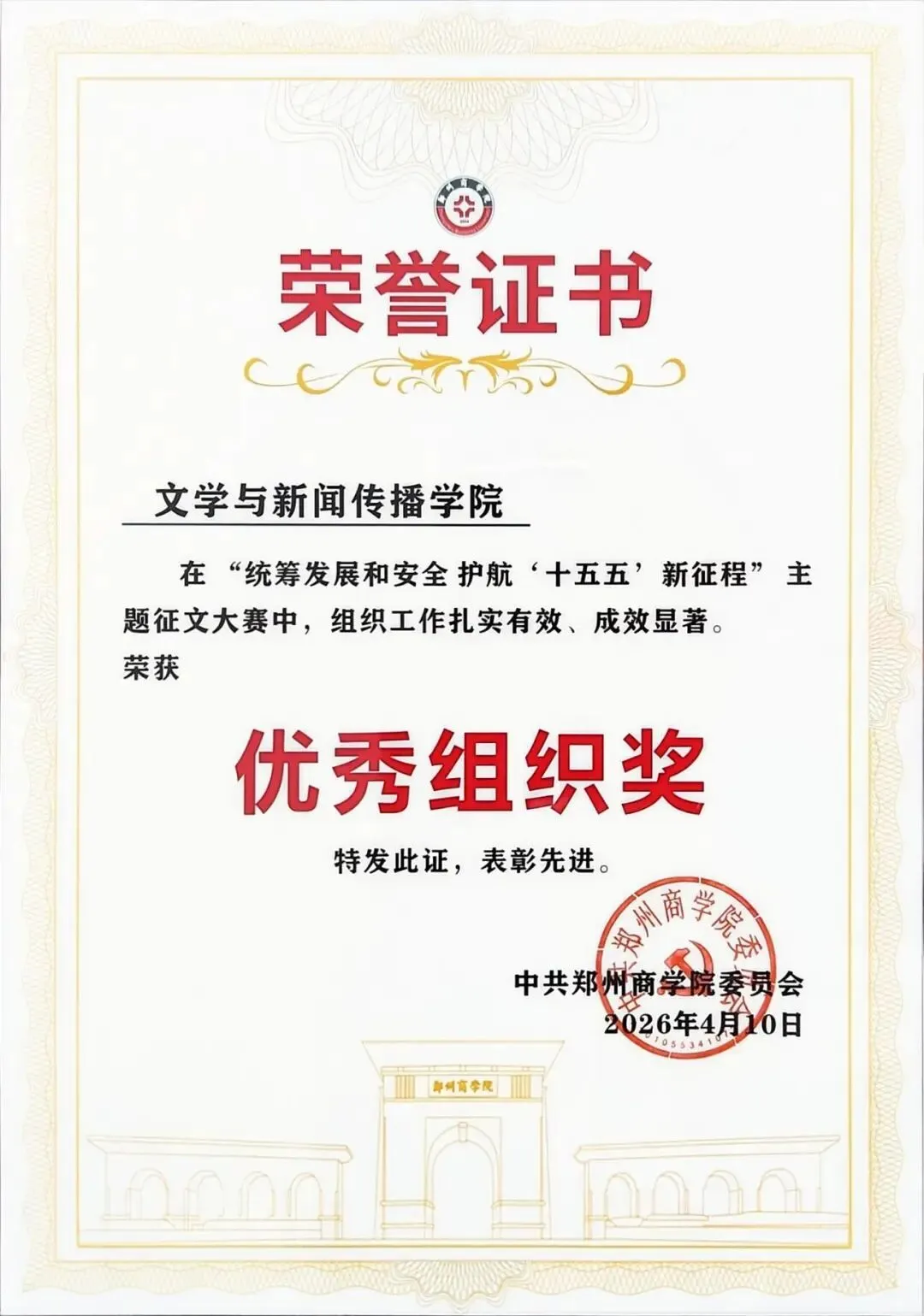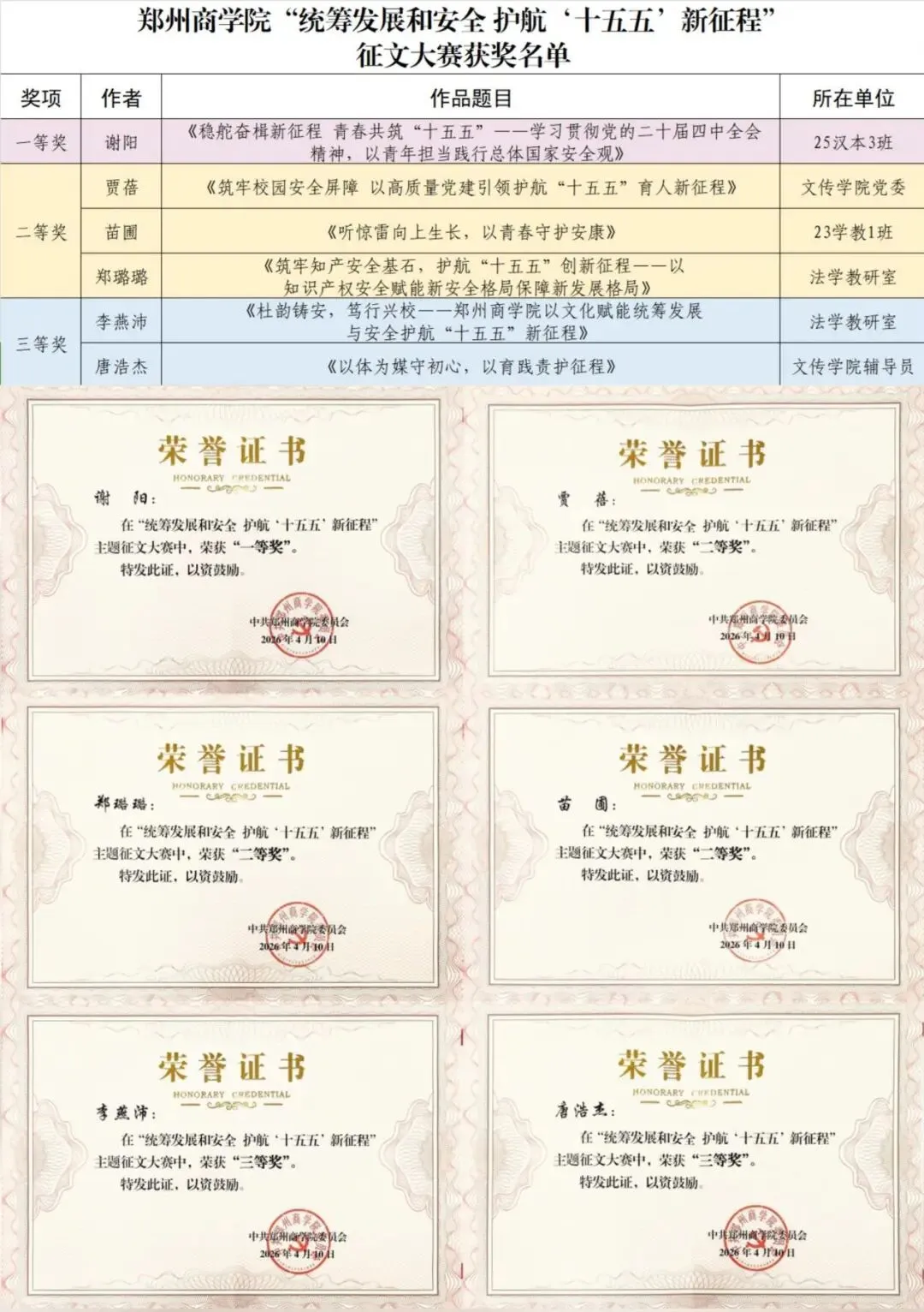 党建文传|喜报!我院师生在郑州商学院“统筹发展和安全 护航'十五五'新征程”征文大赛中斩获佳绩