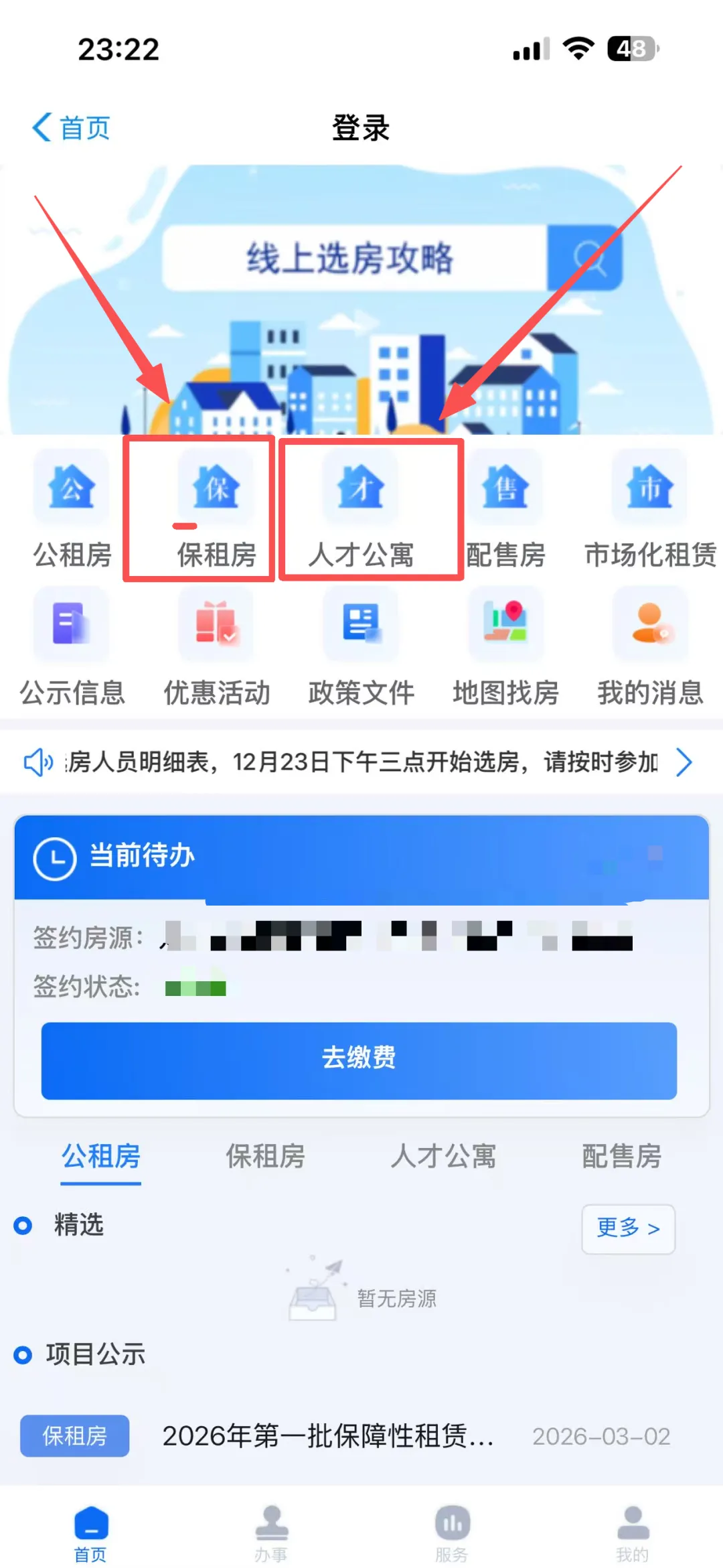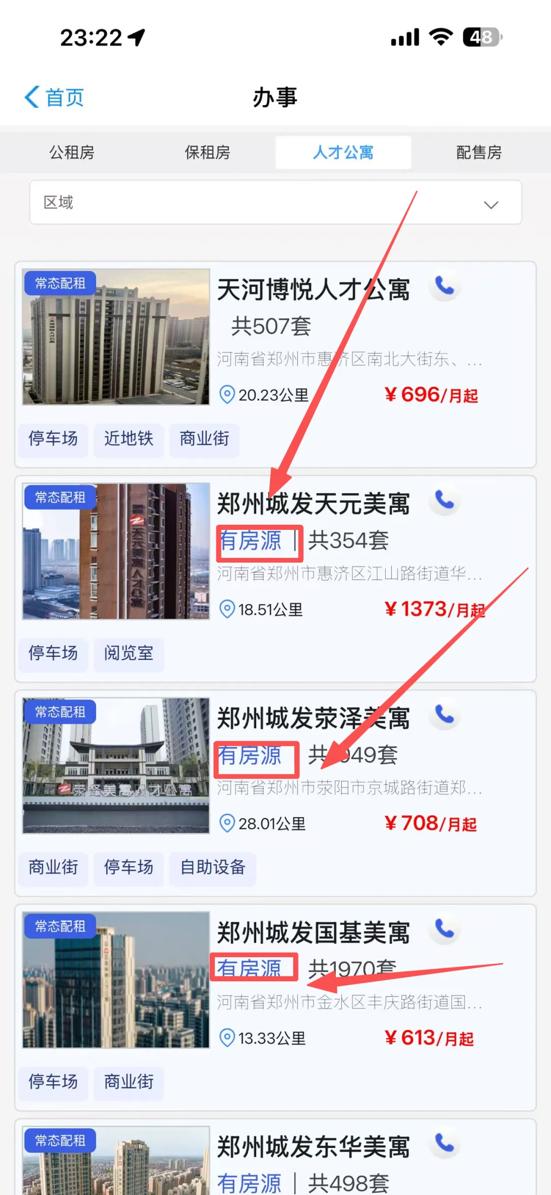 3️⃣选择【人才公寓】时,点击选房,即可查看目前有房源的公寓
