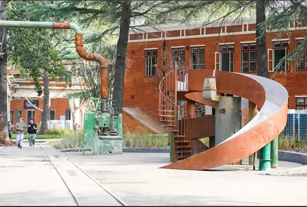 这记忆里,有老街的肌理,也有老厂区的浪漫。二沙厂区的红砖厂房静默矗立,锈蚀的管道缠绕着岁月的痕迹,斑驳的墙面上,爬满了翠绿的藤蔓,把工业时代的硬朗,晕染成温柔的诗意。午后的阳光透过厂房的玻璃窗,在地面投下细碎的光影,风穿过空旷的车间,带着旧时光的回响,仿佛还能听见机器的轻鸣,却又被当下的温柔覆盖——这里的浪漫,从不是刻意雕琢,是旧厂房与新欢喜的相拥,是岁月沉淀后的从容与温柔。
