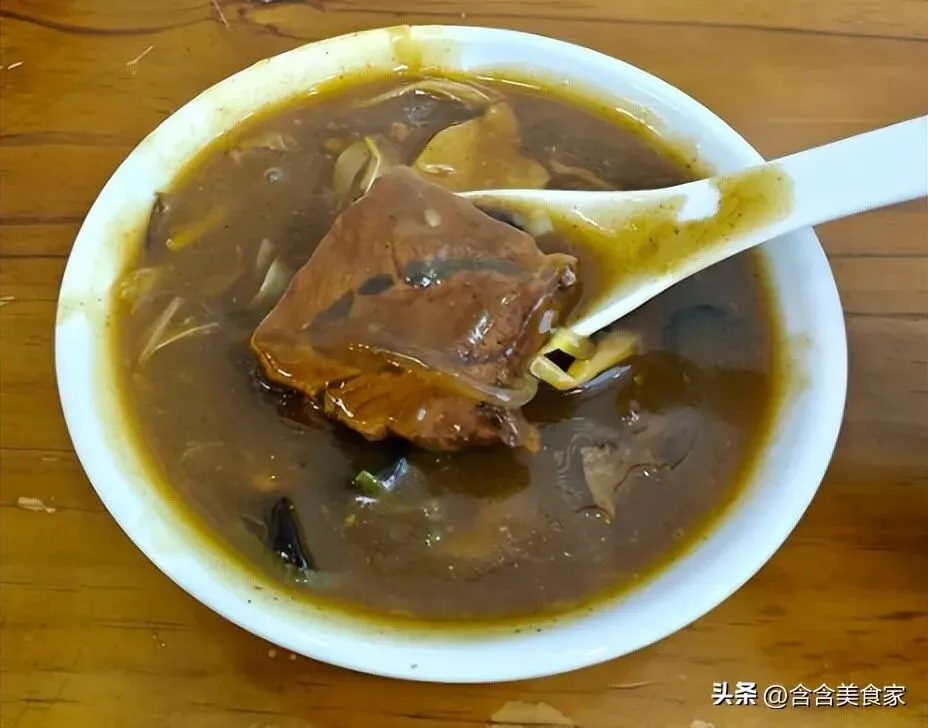 河南早餐顶流,牛骨熬汤,配木耳、粉条、牛肉,麻辣鲜香、浓稠开胃,配油馍头是经典CP。