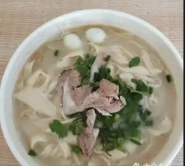 郑州美食名片,河南非遗。羊骨慢炖奶白浓汤,手工宽面筋道爽滑,配羊肉、海带、千张、粉条,汤鲜面筋、料足味浓。