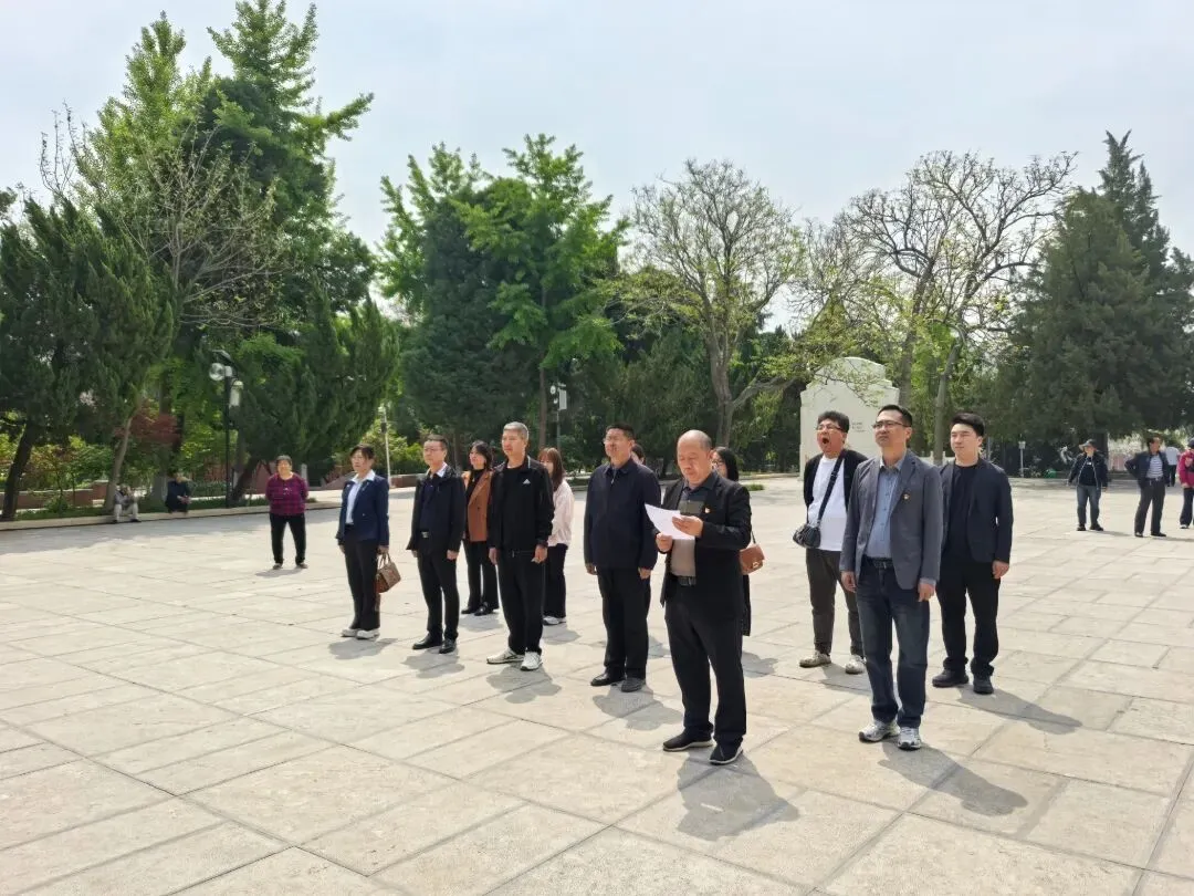 怀着无比崇敬的心情,大家首先来到焦裕禄烈士墓前祭奠。在苍松翠柏的掩映下,全体人员整齐列队,郑州市安阳商会党支部副书记辛季舞主持祭奠仪式,书记李保庆代表全体党员诵读拜谒焦裕禄墓祭文,言辞恳切、誓言铮铮,向焦裕禄同志表达崇高敬意与深切哀思。 随后,敬献花篮、整理缎带,全体人员肃立默哀、三鞠躬,并围绕烈士墓一周,深切缅怀革命先烈丰功伟绩。面对墓碑,大家重温入党誓词,铿锵有力的誓言在陵园上空回荡,彰显了大家传承红色基因、矢志奋斗的决心。全体人员在广场驻足缅怀,接受红色洗礼、汲取奋进力量,将对先烈的无限敬仰与缅怀之情,深植于心、外化于行。