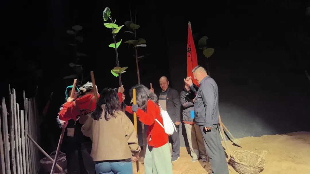 在900平米的 CAVE 沉浸式空间内,沉浸式互动党课《寻找焦裕禄》依托数字内容与真实场景全景融合,以创新的叙事与前沿科技,通过焦桐下的回忆、风雪火车站、问计于民、责任担当、榜样的力量、家风、精神永存、千顷澄碧的呈现,不仅打破传统党课的界限,让大家穿越回60年代的兰考,张捷、郭强、胡光、付琳、李花、李静、李惠娟、王超应邀纷纷化身焦裕禄同志的家属、战友、同事,大家以 “亲历者”的视角,沉浸式感受焦裕禄同志“亲民爱民、艰苦奋斗、科学求实、迎难而上、无私奉献”的伟大精神,在思想的碰撞与情感的共鸣中,完成一次深刻的党性教育与灵魂洗礼。