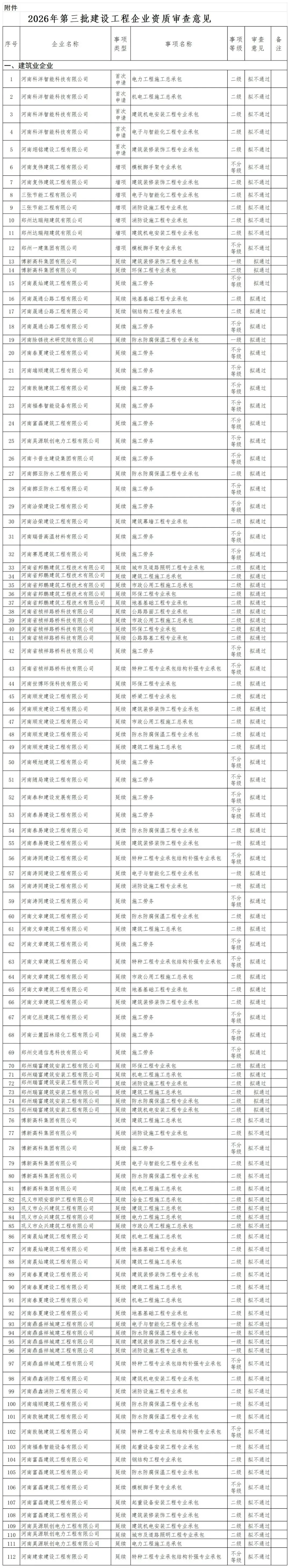 附件:2026年第三批建设工程企业资质审查意见