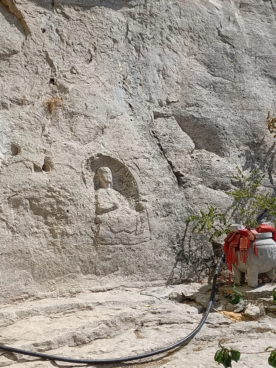车停山脚,没门票。这儿就是个几百米高的石头山包,顺着野台阶爬十几分钟就到顶。不为爬山,为看山顶石窟里的隋代大佛。没护栏,没声光电,十几米高的石佛就露天坐在那。石头粗粝,风很通透。孩子在前面跑出一头汗,大人站在佛像前,不用硬找什么感悟,自然就安静了。
