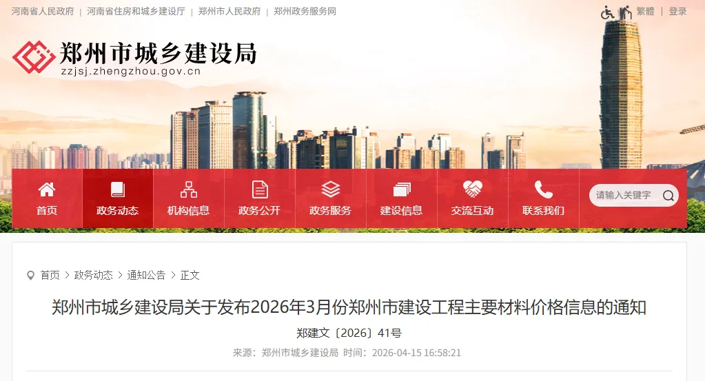 2026年3月份郑州市建设工程主要材料价格信息采集整理工作已完成,请各单位参考使用。