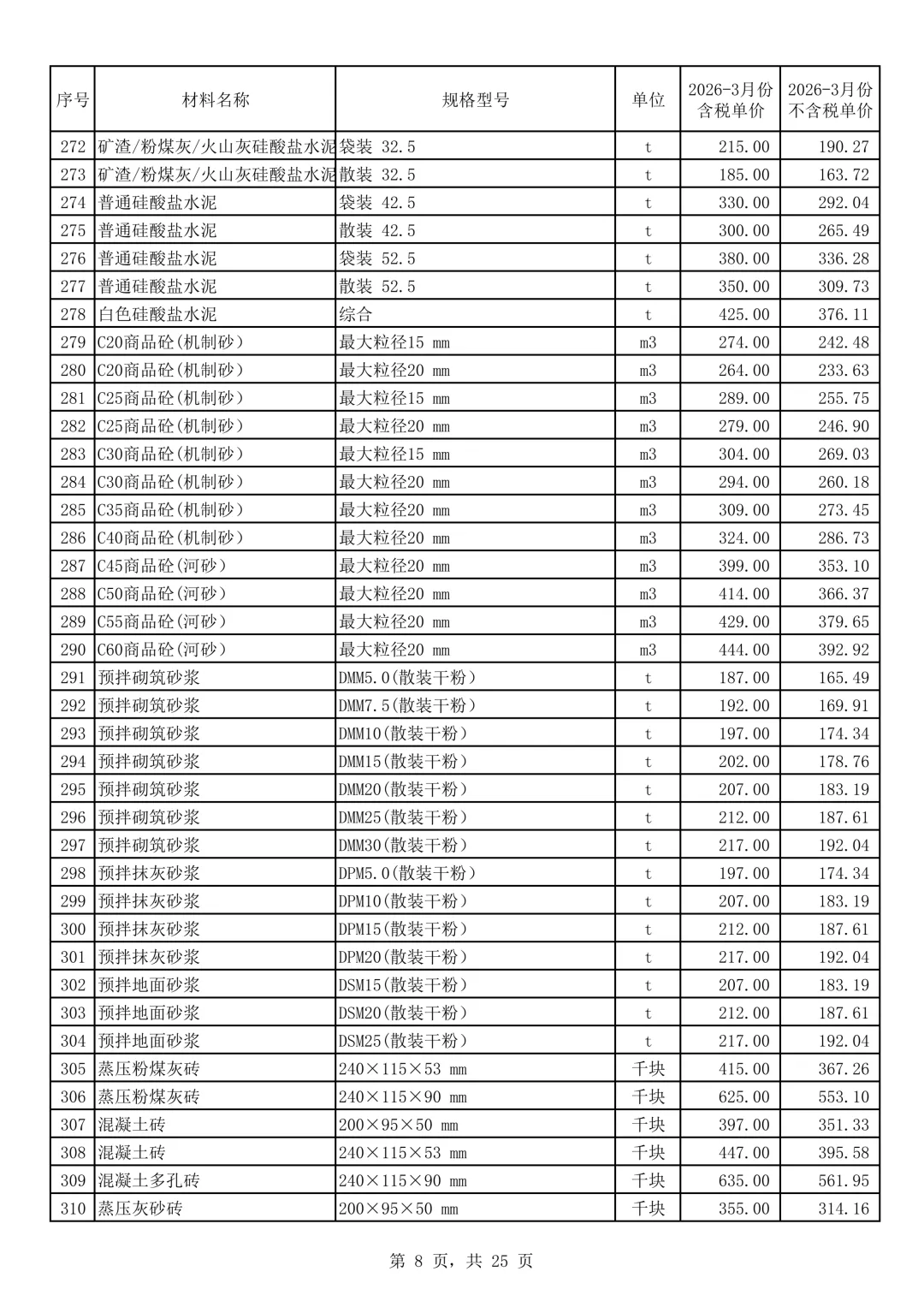 本价格信息中的商品砼价格为到工地价,不含泵送费用,郑州市商品砼增值税按照一般计税13%计取,本价格信息发布的商品砼价格C40以下(含C40),为采用机制砂搅拌的商品砼,如实际采用河砂搅拌的商品砼,经发承包双方签证认可后,3月份每立方米可增加含税单价48.95元,不含税单价43.31元。
