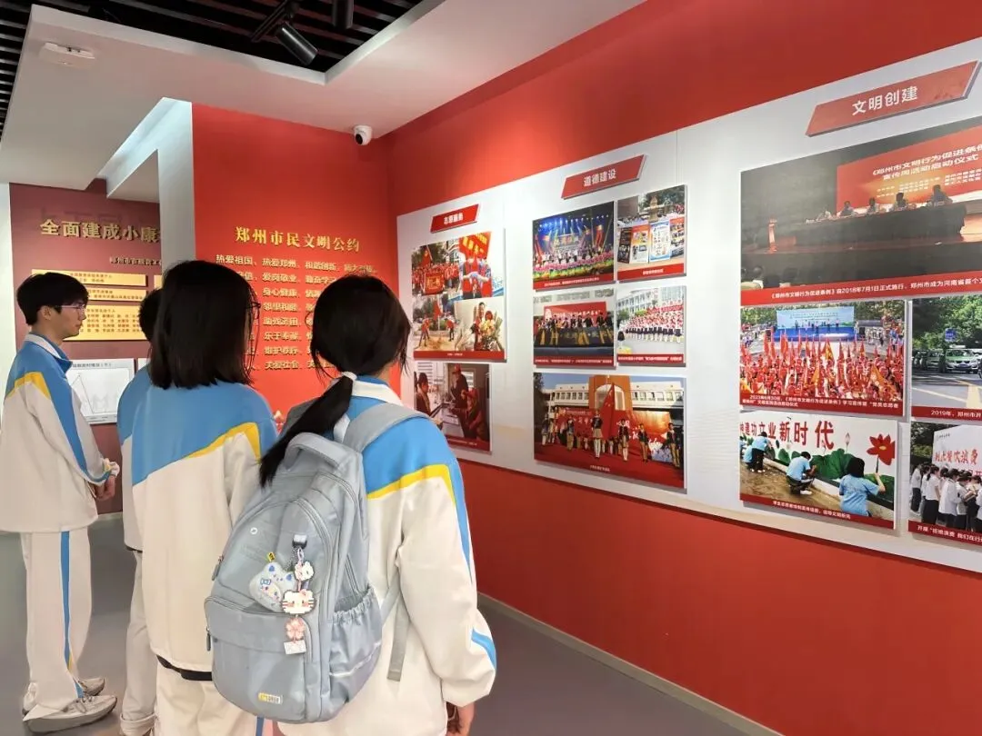 走进庄严肃穆的郑州党史馆,师生们怀着崇敬的心情,在馆内有序参观学习。展厅内,一张张定格历史的珍贵照片、一件件承载岁月的文物史料、一段段波澜壮阔的文字记录,全方位、多角度展现了郑州地区在中国共产党领导下,从革命战争年代的浴血奋战,到和平建设时期的砥砺前行,再到新时代的蓬勃发展的光辉历程。