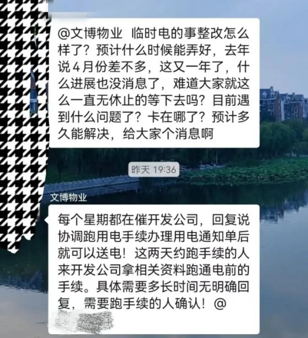 “我是2022年办好手续并进行房屋装修的,2023年正式入住,第一次交电费就发现有问题,执行的不是居民电价,问了物业才知道我们楼用的不是正式电。”业主刘先生告诉记者。