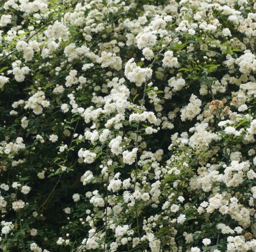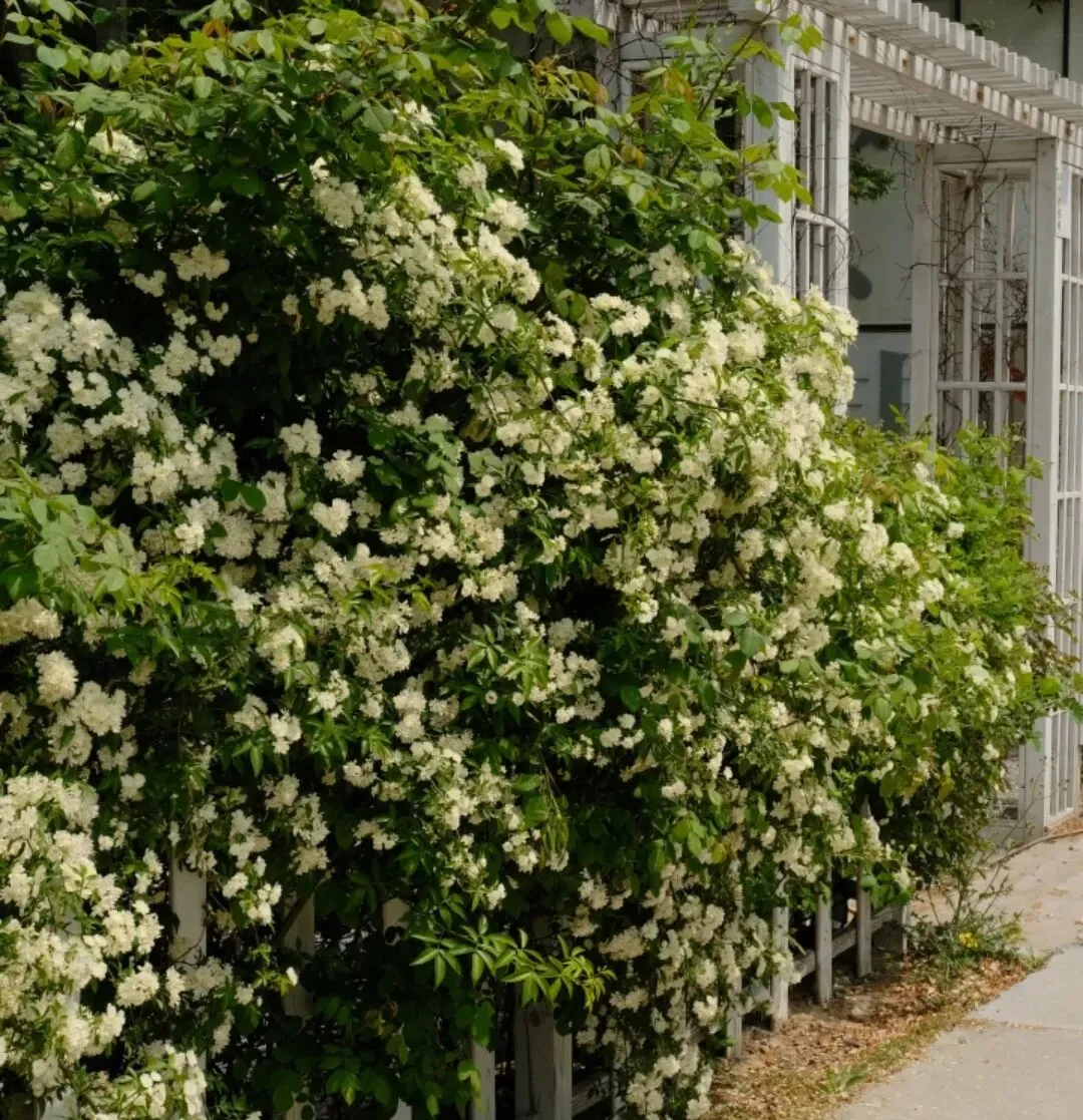 ✅ 当下花况:盛花期,以纯白色木香花为主