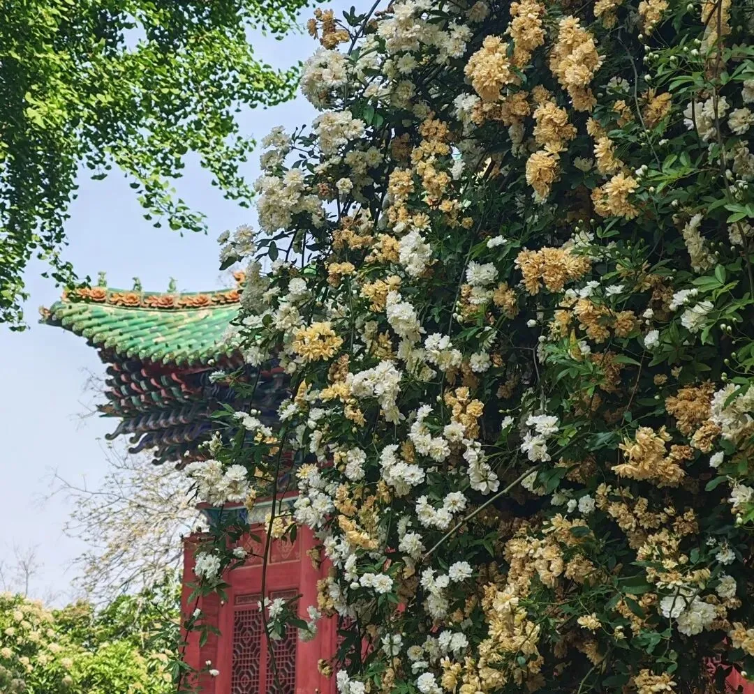 ✅ 当下花况:盛花期,白、黄双色木香花竞相绽放