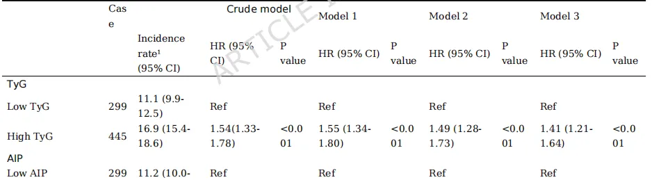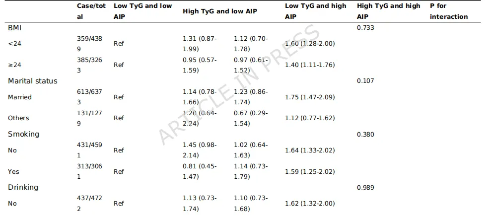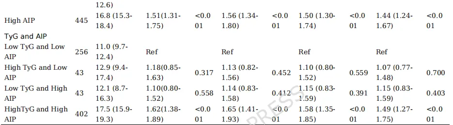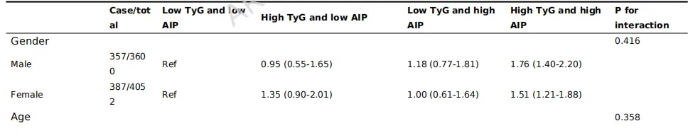 4.多维度交互分析:同时从相加与相乘尺度评估交互作用,揭示了TyG与AIP在不同效应尺度上的复杂关系。