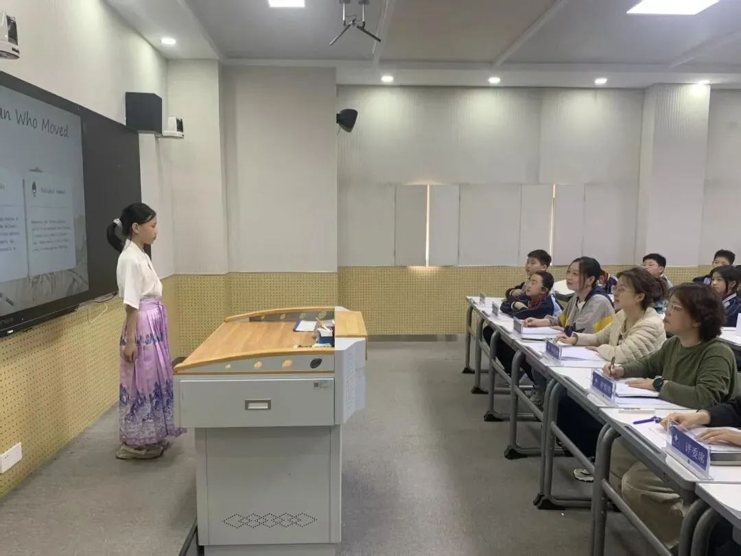 三年级学子勇敢登台,以稚嫩流畅的演讲展现初学积累,面对即兴问答大胆表达,尽显纯真底气。