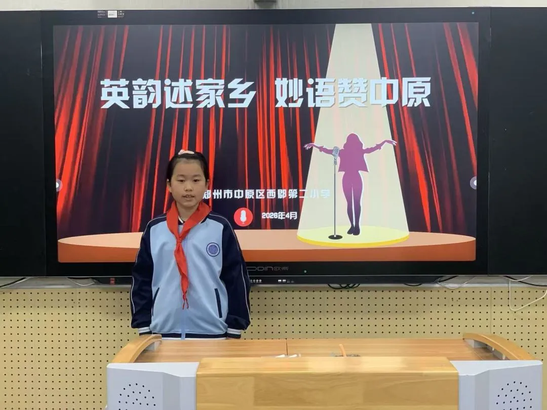 为落实英语学科核心素养,丰富英语学科育人内涵,引导学生用国际视野讲好家乡故事,传承中原文化,2026年4月14日下午,郑州市中原区西郡第二小学三、四、五年级的参赛选手齐聚学校录播教室,举行了一场生动、精彩的英语演讲比赛。