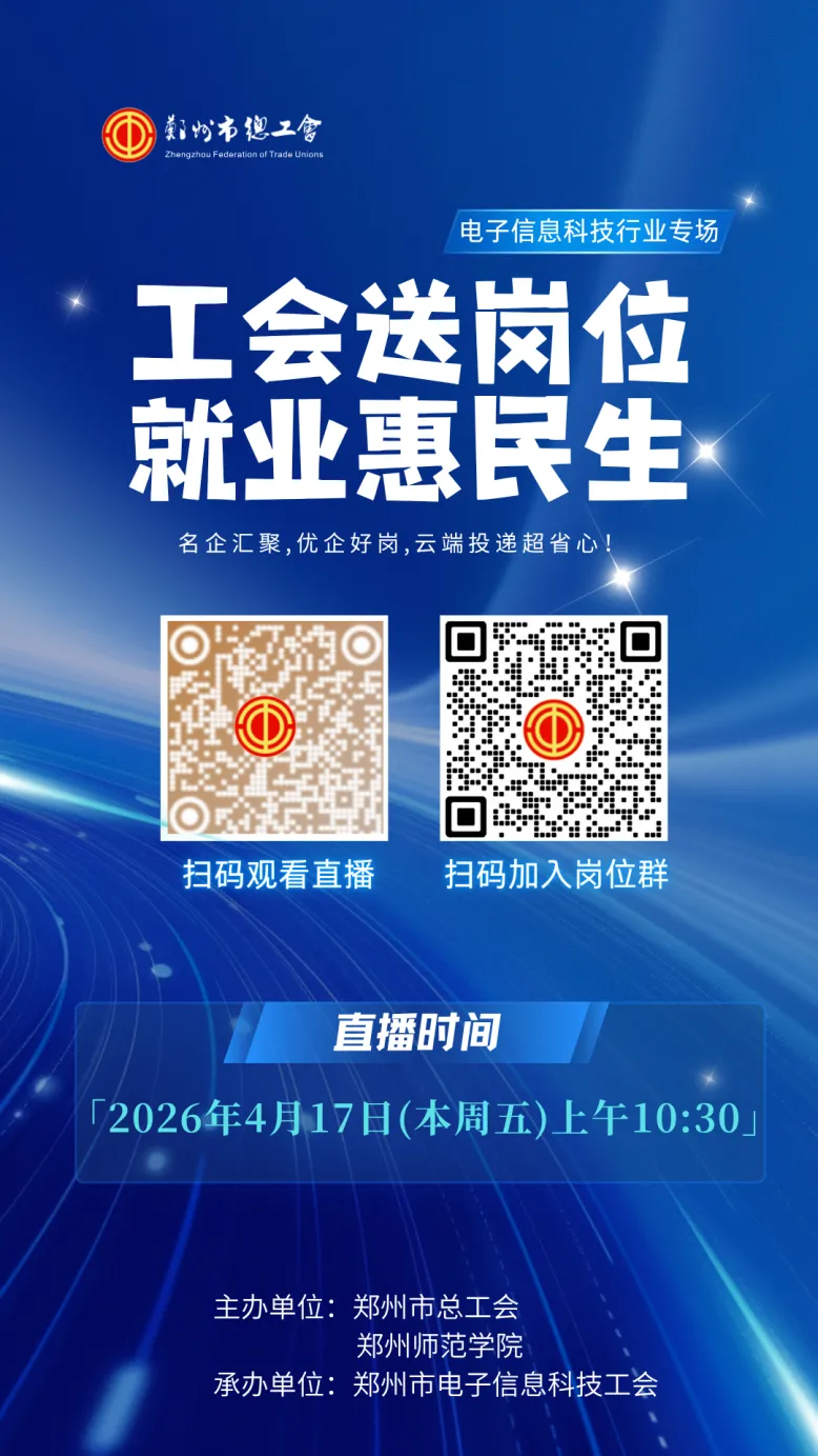 4月17日!郑州市总工会电子信息科技行业专场招聘会及直播带岗活动即将开启→