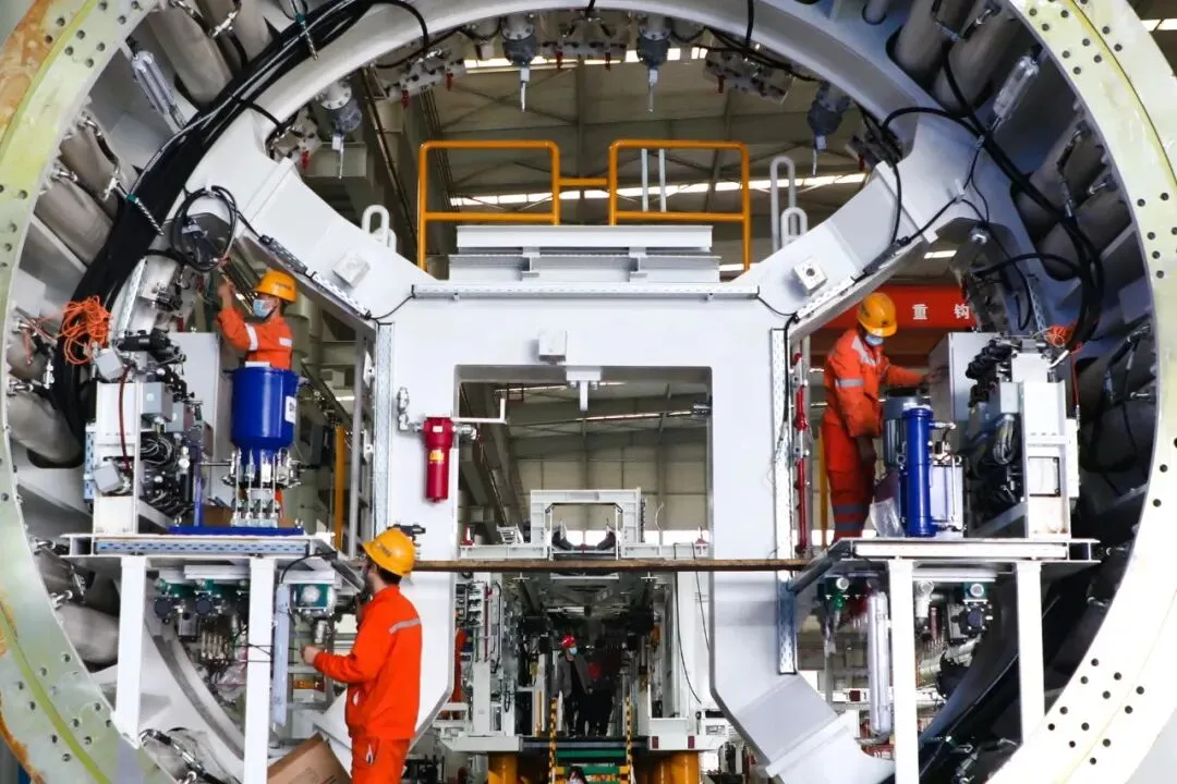 中铁盾构生产车间内正在忙碌的工人(资料图) 李新华 摄