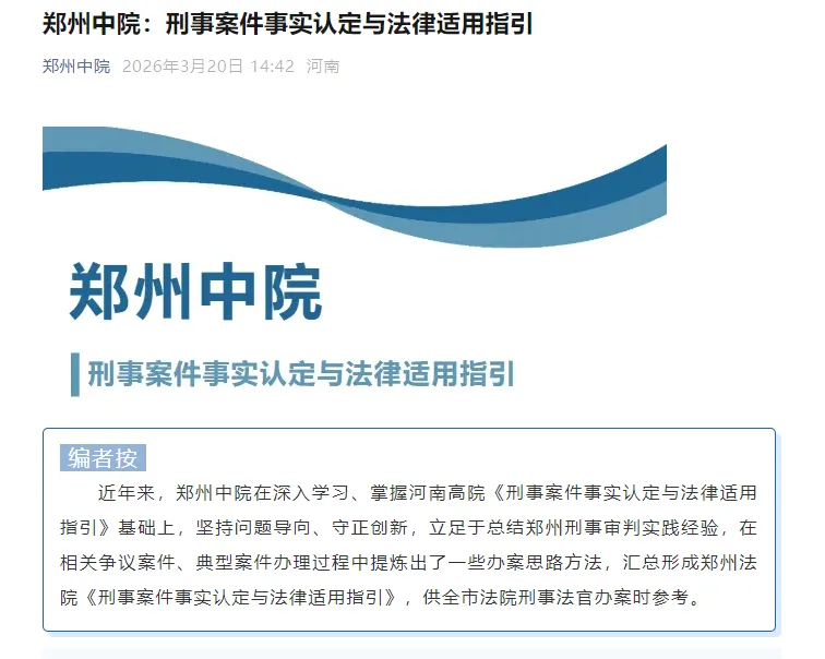 1. 刑事案件事实认定与法律适用指引(郑州中院版,2026)
