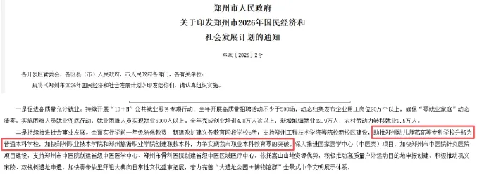 郑州市明确提出,要支持郑州职业技术学院、郑州旅游职业学院升格职业本科。消息一出来,大家反应是郑州又要多两所本科院校了,其实不只是“多两所学校”的事情,而是郑州职业教育的发展逻辑正在变化。