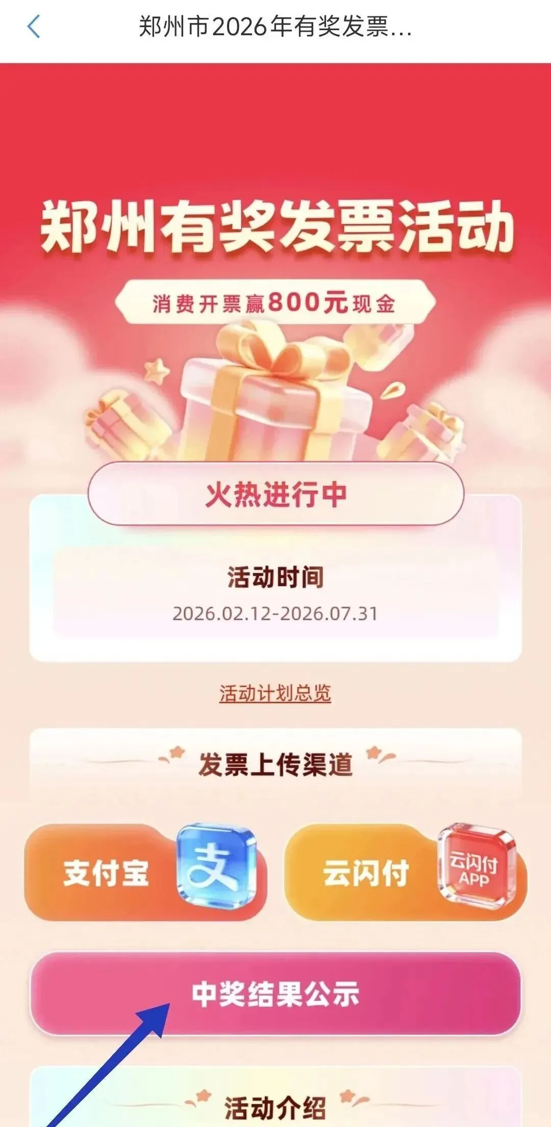 1.云闪付APP:首页点击“政府消费券",选择“有奖发票”,点击上传发票,上传成功后点击“立即抽奖"即可。