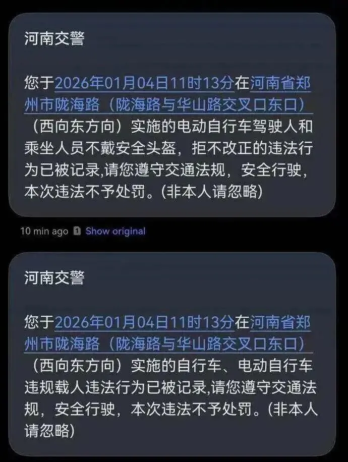 同时,系统通过人脸识别比对锁定当事人,自动留存证据,并通过“河南交警”短信精准推送违法告知,列明违法事实、法律依据和处理地点,引导当事人主动接受处理。