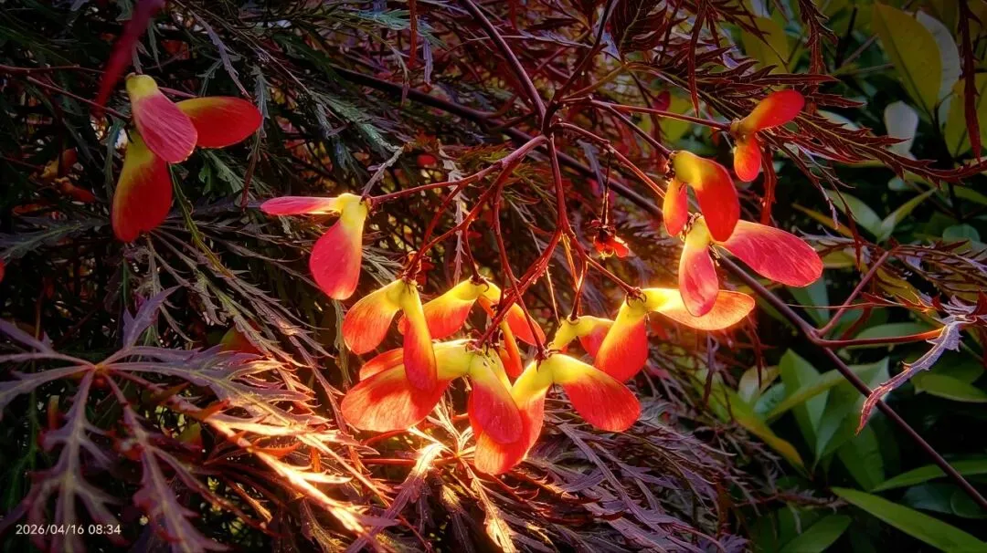 很多人以为鸡爪槭是外来的日本红枫,其实它的根在中国。早在《楚辞·招魂》里,就有“湛湛江水兮上有枫,目极千里兮伤春心”的记载,这里的“枫”,就包含了鸡爪槭这类槭树,从战国起,它就成了中国人刻在骨子里的诗意符号。汉代皇宫里遍植枫树,连帝王居所都被称作“枫宸”,足见古人对它的偏爱。到了唐代,杜牧一句“停车坐爱枫林晚,霜叶红于二月花”,更是把槭树的秋红写进了中国人的文化基因里,而你眼前这春日的红翅果,正是它在秋天绚烂前,给郑州人递来的第一份浪漫。