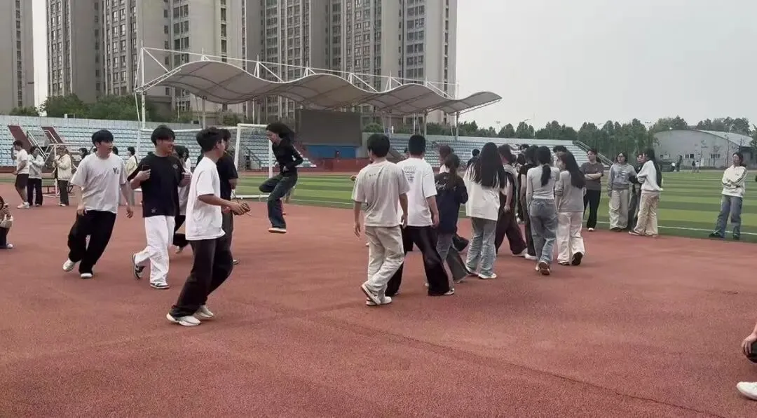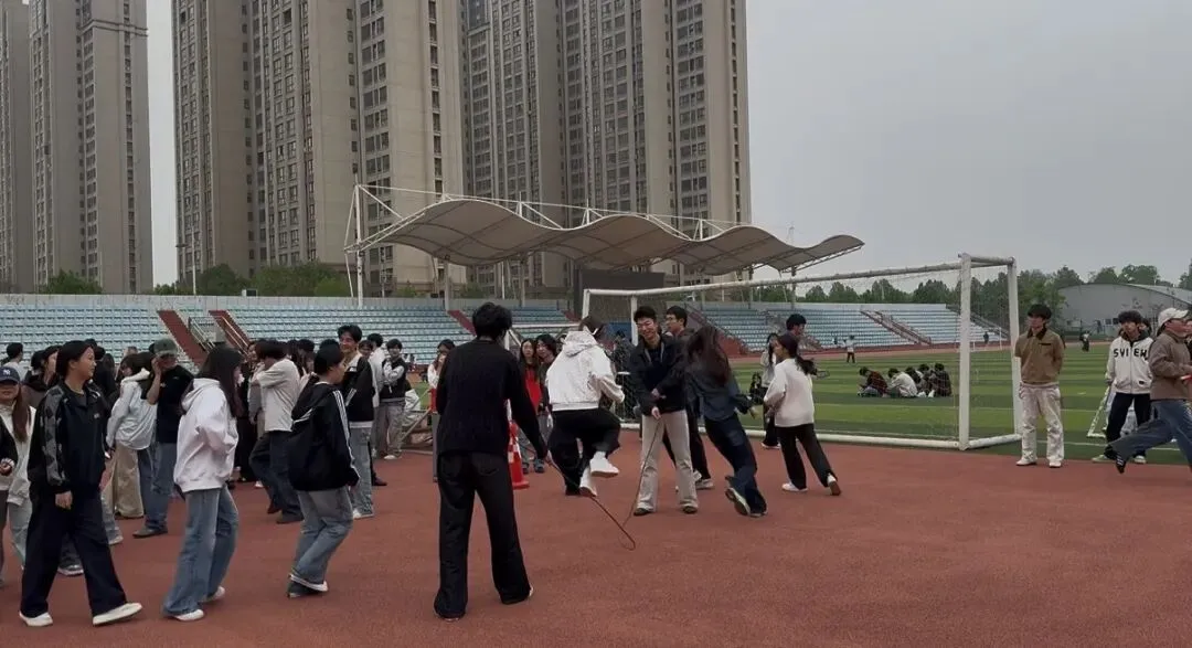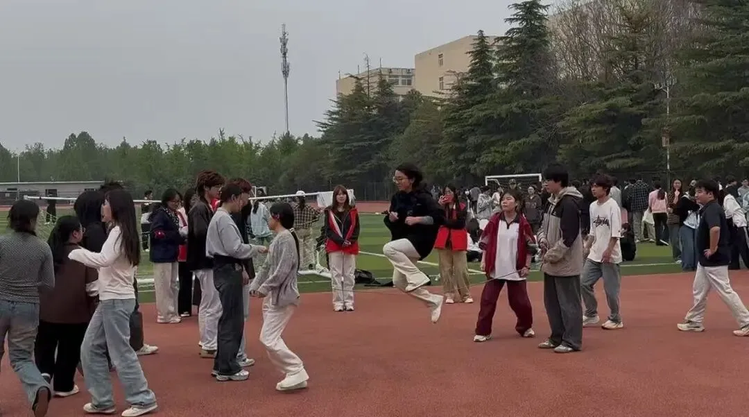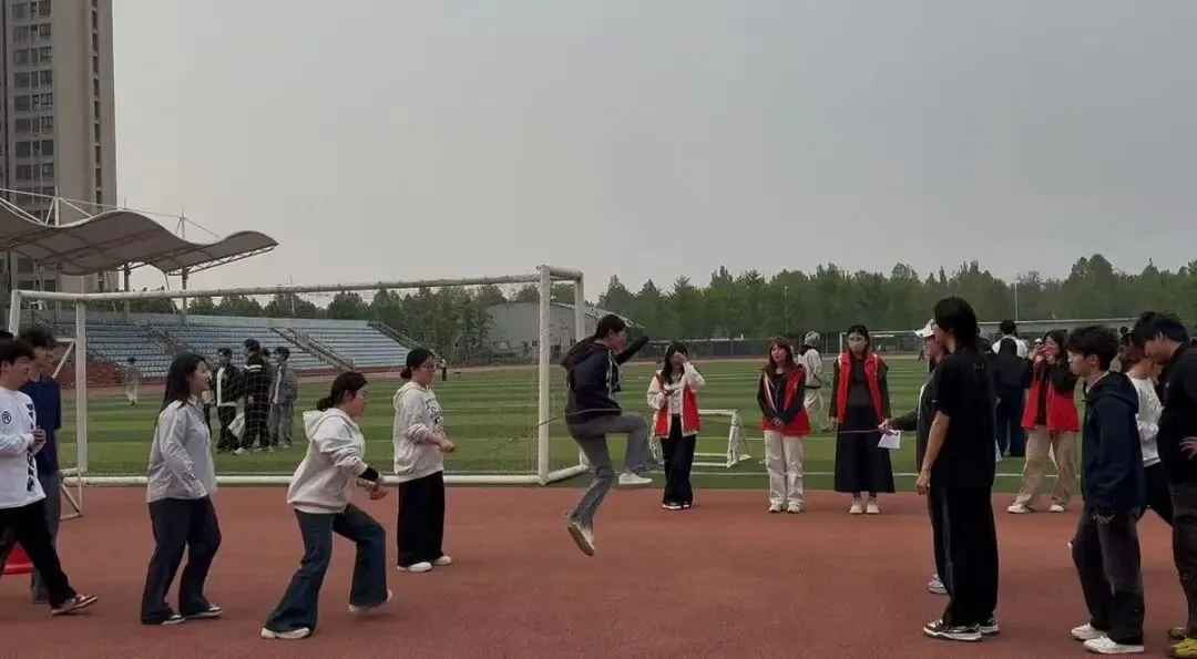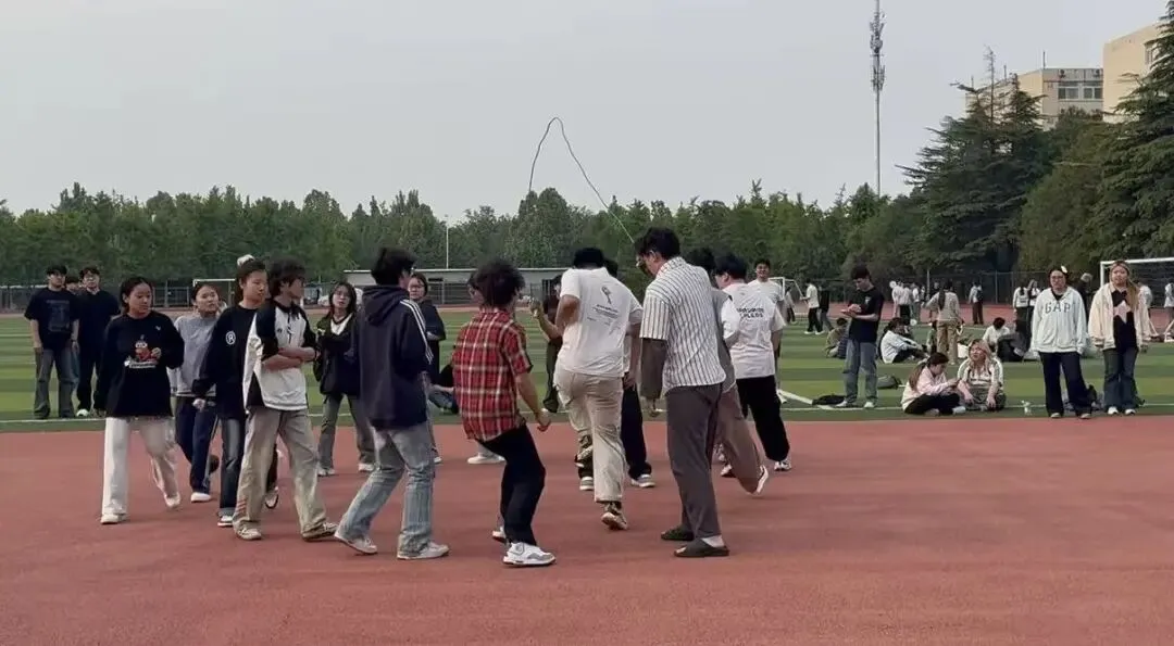 随着清脆的哨声响起,长绳在空中划出一道道灵动的弧线,上下翻飞、节奏铿锵。队员们身姿轻盈,如飞燕般穿梭其间,腾空、跨越、落地,一气呵成,整齐又利落。大家心往一处想、劲往一处使。哪怕偶尔绊绳,也立刻重整旗鼓,毫不气馁。各班队伍都展现了相当高的团队协作能力和竞技水平。