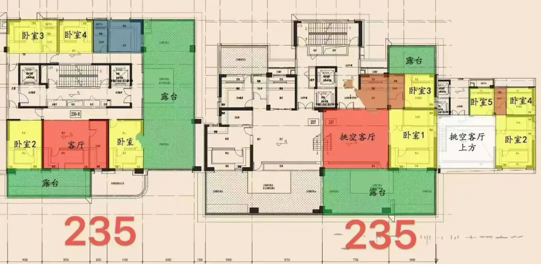 235㎡ | 约235㎡ | 5房4卫 | 约160% | 约376㎡ | 挑空复式、空间开阔 |