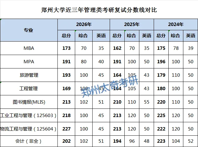 综合成绩=折合百分制后初试成绩×60%+复试总成绩×40%。对于计划备考 2027 年郑州大学非全日制 MBA 的同学来说,选对目标、摸清考情,有助于更合理地规划备考方向。结合 2026 年最新考情数据,我们一起拆解郑大非全 MBA 的报考关键,帮大家理清思路、科学备考。