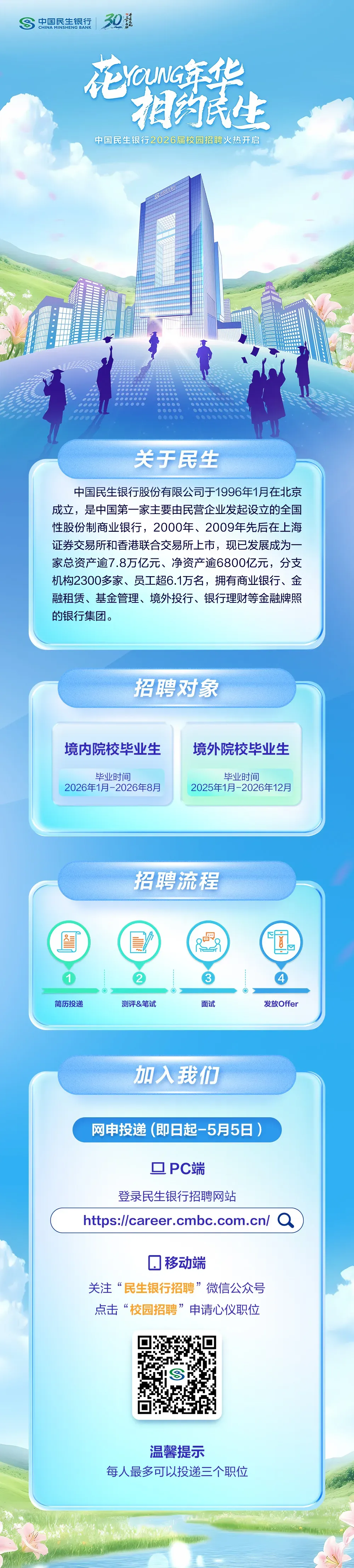 中国民生银行2026届校园招聘启事