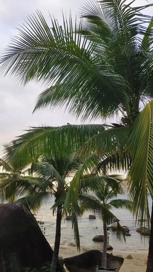 2月16日正月初七,早上7:40起床,窗外海雾沉沉,椰林也一片朦胧。