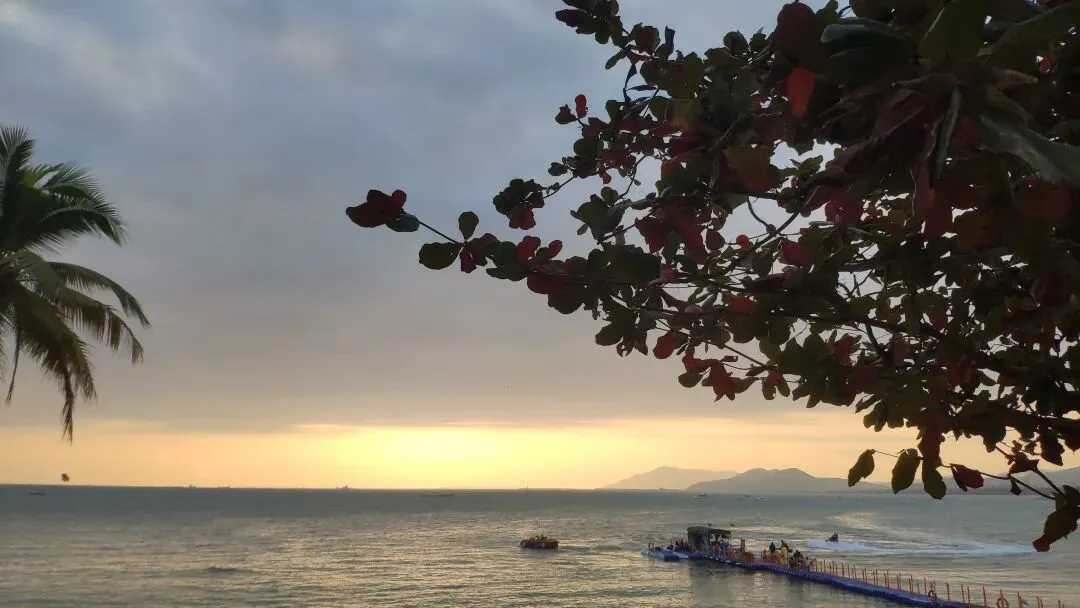 17:00,导航显示天涯海角景区拥堵,把车停在路边一个临停点,步行到景区。提前预约好了门票,入口刷码验票。
