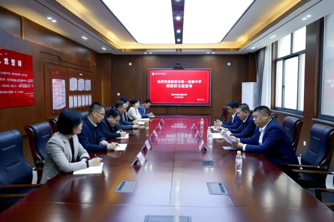 为落实《县域普通高中振兴行动计划》要求,搭建校际协同发展平台,4月13日,新密市第一高级中学校长刘浪带领18人团队,赴郑州市第五高级中学参观交流。郑州市第五高级中学党委书记陈峻、校长王勇等领导及相关负责人热情接待,共探教育高质量发展路径。