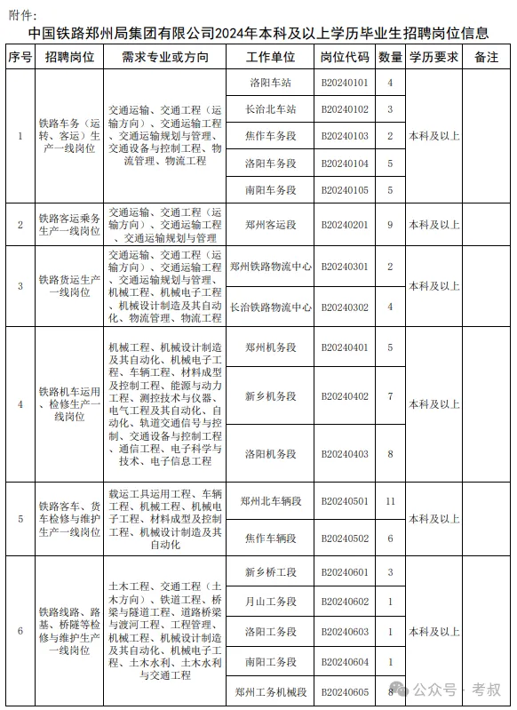 附件:中国铁路郑州局集团有限公司2024年招聘普通高校毕业生公告三