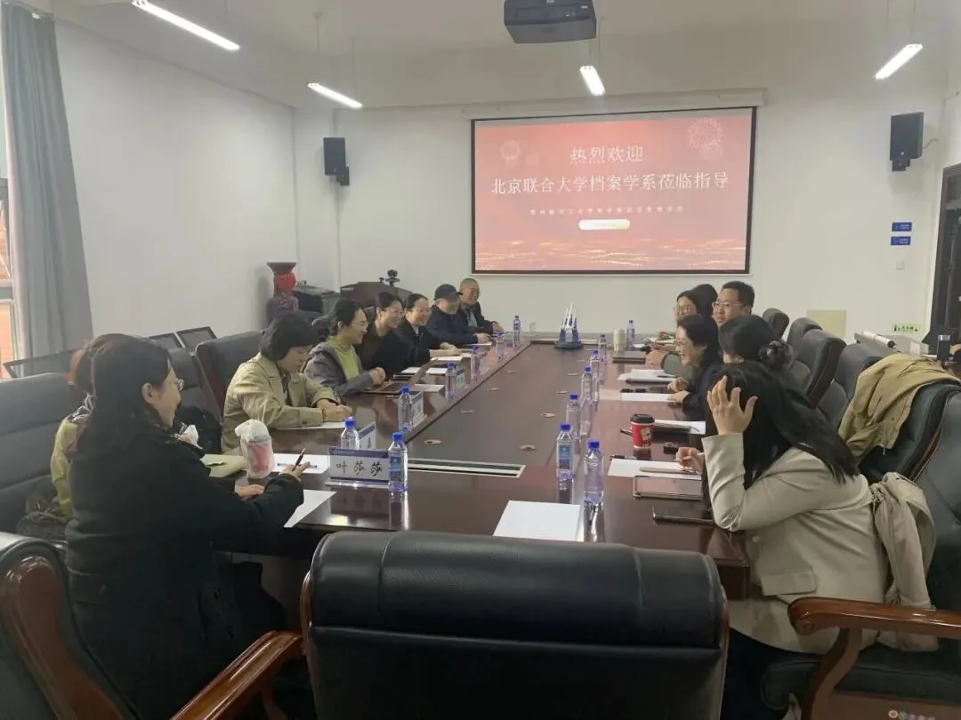8日上午,调研组前往郑州航空工业管理学院,围绕“档案学学科专业一体化建设与实践教学改革创新”开展座谈。双方分享了各自在产教融合、Ai赋能环境下课程体系优化与教学改革、实验实训平台建设等方面的探索与实践,并就未来深化校际合作达成初步共识。