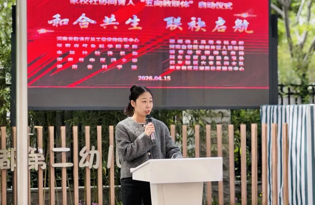 2026年4月15日上午,郑州市郑东新区商都第二幼儿园“和合共生·联袂启航”——家校社协同育人“五向教联体”建设启动仪式隆重举行。