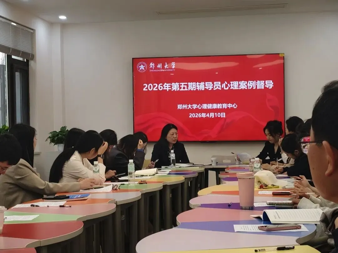 2026年4月10日下午14:30-16:00,郑州大学心理健康教育中心举办了2026年第五期辅导员心理关爱案例督导会。督导会议由心理健康教育中心主任刘慧瀛主持,文学院,公共卫生学院,生命科学学院等10个学院20位辅导员参加会议。