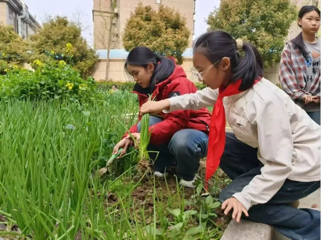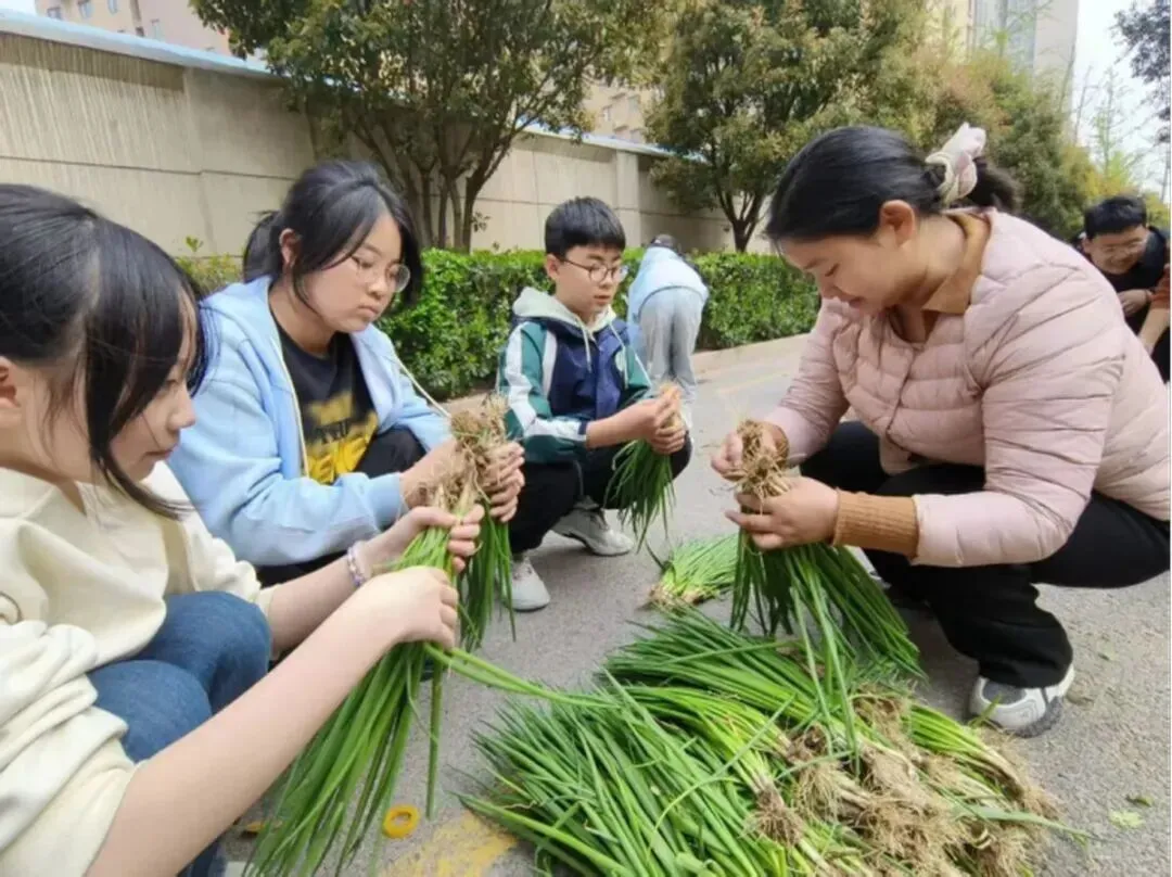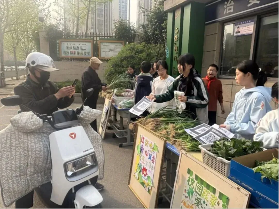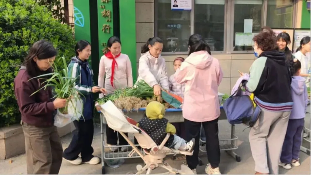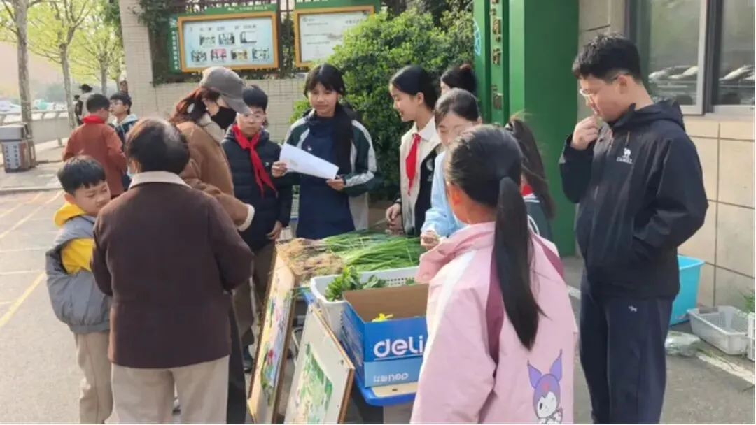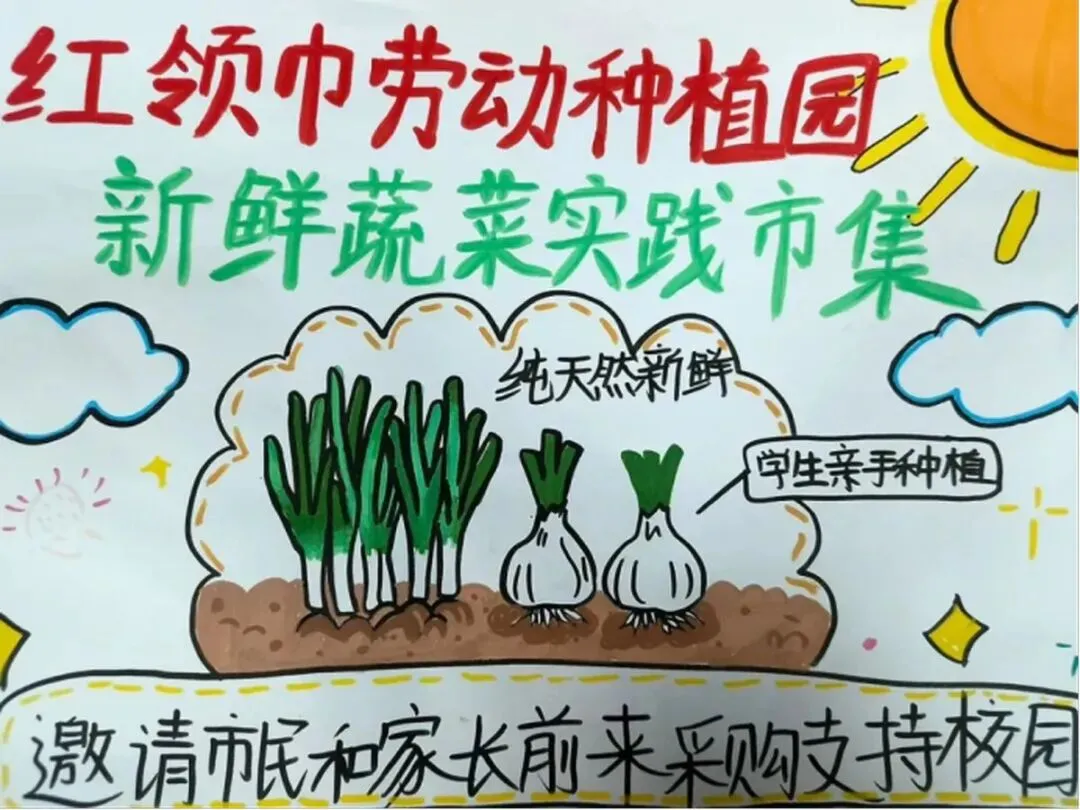 蔬菜市集的小葱、蒜苗、菠菜等蔬菜,均由少先队员们亲手栽种、悉心照料,从播种、浇水到施肥、收获,每一个环节都凝聚着队员们的汗水,是劳动教育的生动实践。