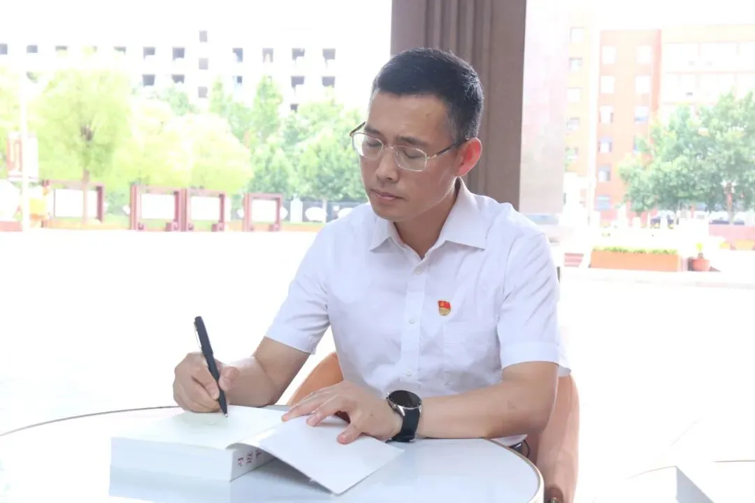 6月28日,校党总支组织全体党员教师在一楼大厅开展“庆七一”过“政治生日”主题党日活动。校党总支书记郭华伟同志为过“政治生日”的党员赠送了精心设计制作的“政治生日”贺卡并送上《习近平讲党史故事》等书籍,表达党总支对党员的关心和祝福。贺卡承载着初心与使命,是激励更是鞭策,提醒党员要时刻牢记党员“第一身份”,始终牢记党的宗旨,为学校教育教学发展作出新的贡献。