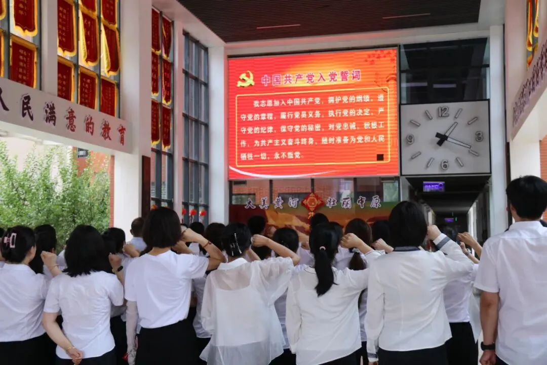 “我爱你中国,我爱你中国,我要把最美的歌儿你……”6月28日,在学校行政楼一楼大厅内传来悠扬的歌声,全体党员教师及团员代表手持红旗,歌唱《我爱你中国》、《保卫黄河》,以红歌“快闪”的形式向伟大的祖国深情告白。现场气氛热烈,师生的激情演唱将活动推向高潮!大家以饱满的热情迎接建党节的到来,抒发对祖国、对党无比真挚的情怀。