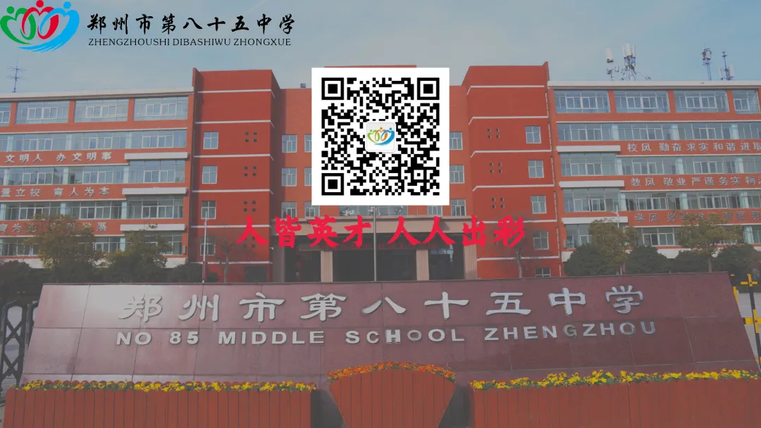 郑州市第八十五中学自建校以来,秉承“人皆英才、人人出彩”的校训,以办好“人民满意的教育”为奋斗目标。办学17年来,每年都有大批出彩学子被“大小三甲”等省级示范性高中录取,学校也先后荣获全国学校安全教育示范基地、省级文明校园、首批河南省“五育”并举实验学校、河南省第三批义务教育标准化管理特色校、省级书香校园示范校、省级平安校园、省级德育先进集体、省级体育传统项目学校、郑州市新优质初中、郑州市教育教学先进单位、郑州市教育教学改革先进校、郑州市美育示范等数百项省市区各级各类荣誉。
