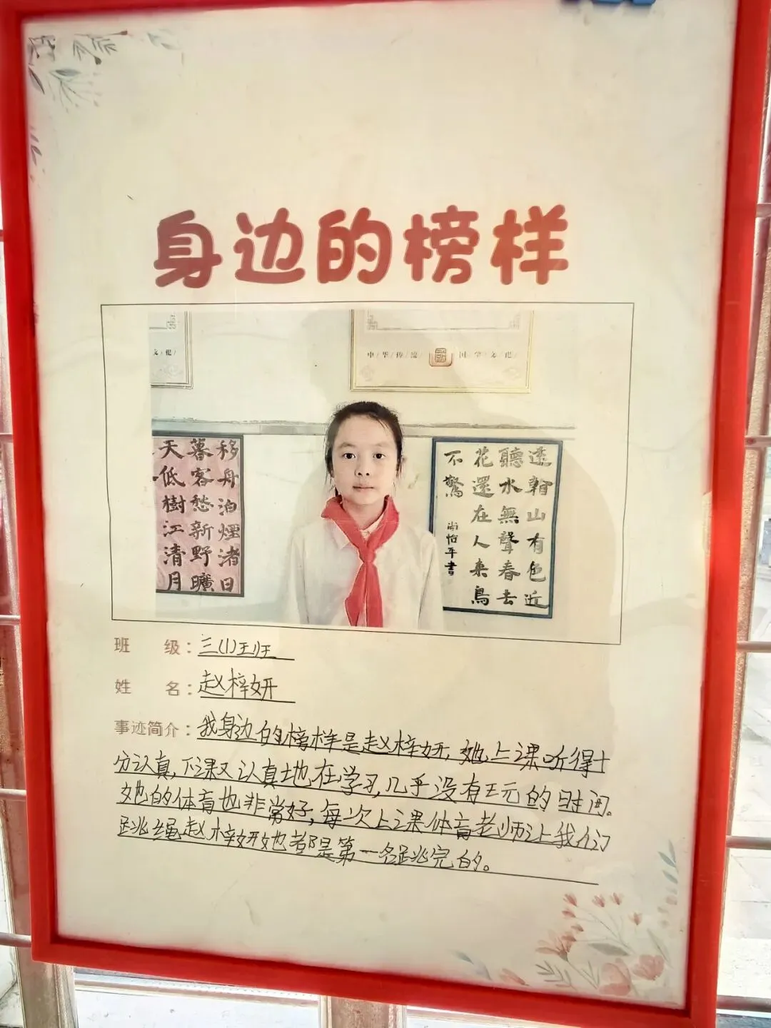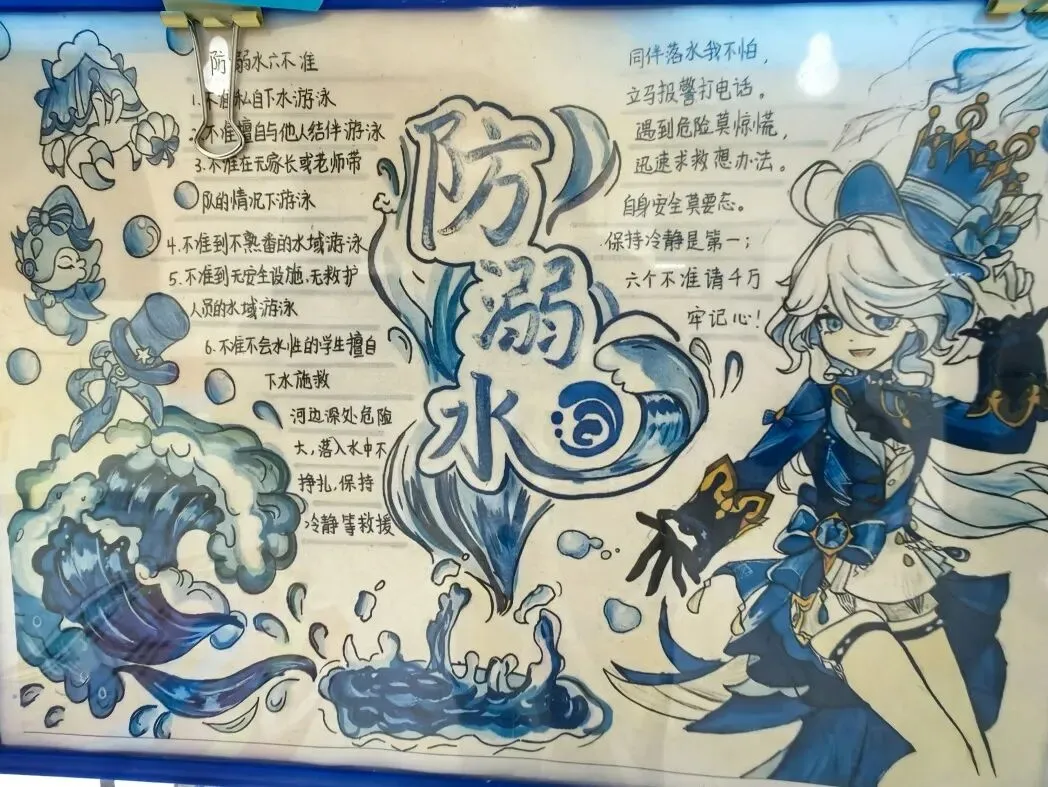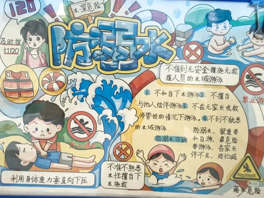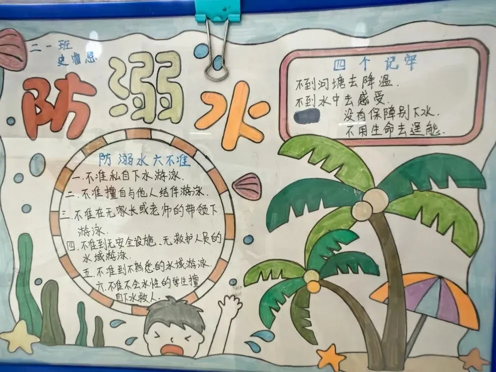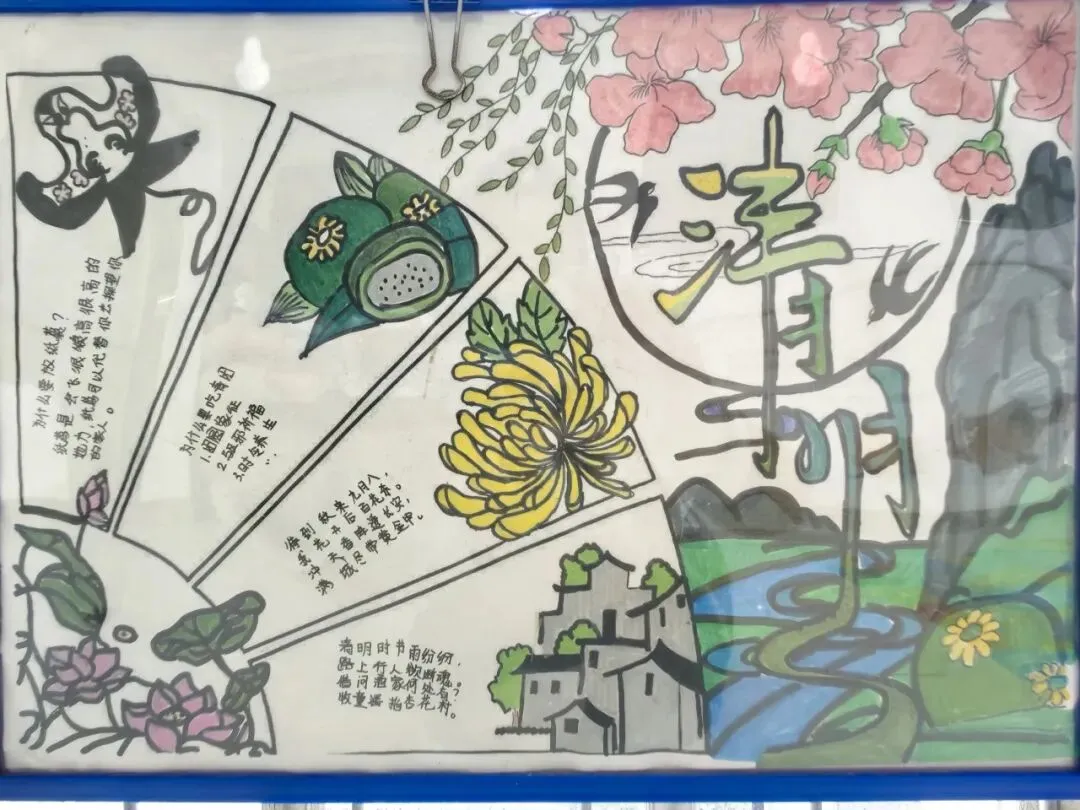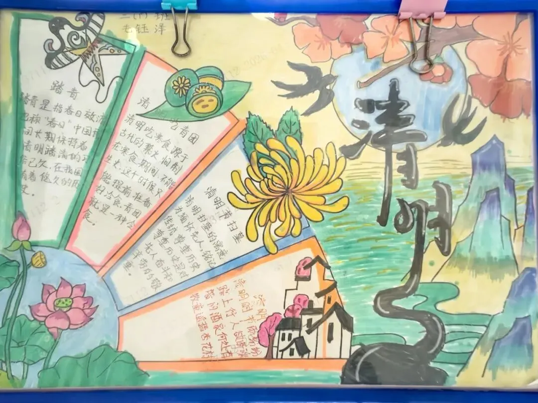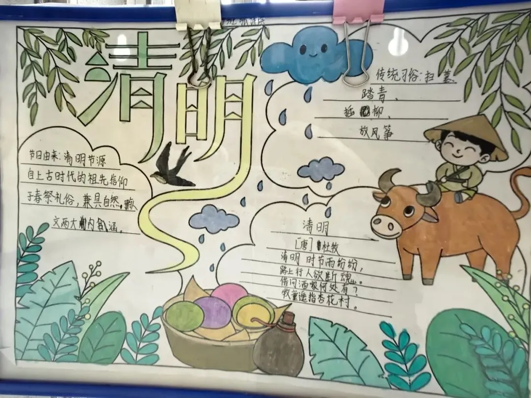 恰逢清明时节,各班打造的清明祭英烈主题板块格外亮眼,以“青山有幸埋忠骨,白花无声敬英魂”为情感基调,通过革命先烈事迹摘抄、红色手抄报、清明抒怀感言等内容,引导学生缅怀革命先辈,传承红色基因,厚植爱国情怀;身边的榜样板块中,同学们立足校园与生活,挖掘身边老师、同学的闪光点,用文字记录榜样故事,用照片定格温暖瞬间,践行“三人行,必有我师焉”的求学态度,营造出见贤思齐、向善向上的班级氛围;防溺水安全板块则以直观的手绘海报、安全警示标语、防溺水知识口诀,将生命安全教育融入日常,时刻提醒学生珍爱生命、远离危险,筑牢校园安全防线。