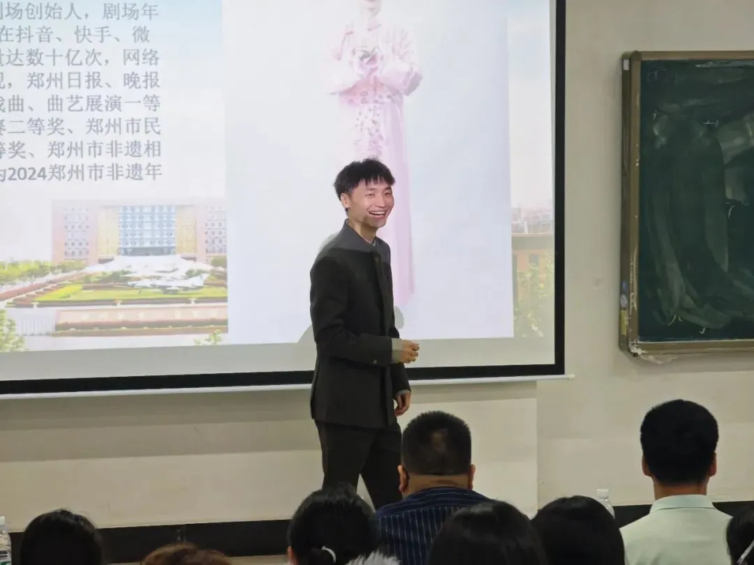 作为河南倒口相声非遗传承人,潘凯在表演间隙还向同学们普及了相声非遗知识,讲解了倒口相声的历史渊源、艺术特点和传承意义,让同学们深入了解这项非遗技艺的文化内涵,引导青年学子关注非遗、热爱非遗、传承非遗。